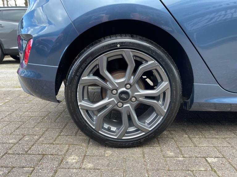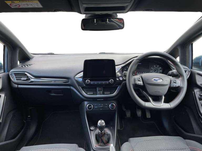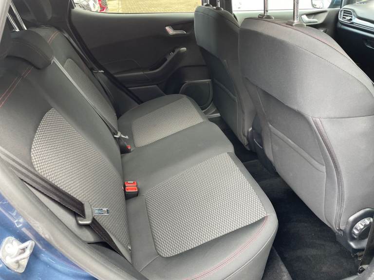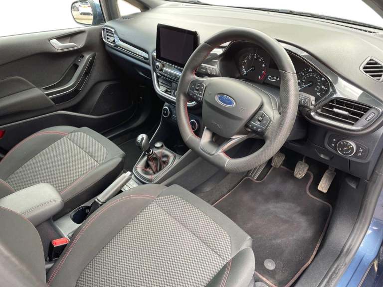 .the key features for the 2021 Ford Fiesta 1.0 EcoBoost Hybrid mHEV 125 ST-Line Edition 5dr 1.0L: Ford SYNC 3 Navigation system incl 8'' touchscreen. Rear parking distance sensors. Rear privacy glass. The 2021 Ford Fiesta ST-Line Edition features a 1.0L EcoBoost mild-hybrid engine delivering 125PS, offering responsive performance and excellent efficiency. The ST-Line Edition trim adds sporty styling, alloy wheels, and a dynamic interior with red stitching and sport seats. Technology highlights include a touchscreen infotainment system with Apple CarPlay and Android Auto, digital display, and climate control. Advanced safety features such as lane-keeping assist and automatic emergency braking ensure confident everyday driving..Bluetooth system, Electric power steering, Ford easy fuel, Ford SYNC 3 Navigation system incl 8'' touchscreen, 7 speakers, FordPass connect, Apple carplay, android auto, voice control and emergency assistance, Rear parking distance sensors, Selectable drive modes (Normal, Sport, Track), Trip computer, Sports suspension, 2 USB ports, Auxiliary input socket, DAB Digital radio, Steering wheel mounted controls, Body colour bumpers, Body colour door handles, Body colour large rear spoiler, Body coloured electrically operated and heated door mirrors with side indicators, Cornering front fog lights, Electric front windows/one touch facility, Electric rear windows, LED Night signature to rear lights, Quickclear heated windscreen, Rain sensing wipers and auto dimming rear view mirror, Rear privacy glass, Rear wiper, Unique ST-Line upper grille & full bodystyling kit with ST-Line wing badges, 3 spoke flat bottomed leather steering wheel, 60/40 split folding rear seat, Adjustable head restraints, Black headlining, Boot carpet, Centre console with opening armrest, 2x cupholders, 12v and USB, Chrome inner door handles, Cloth upholstery, Footwell illumination, Front floor mats in velour, Front map reading lights, Front seat and rear pockets, Illuminated glovebox, Leather gaiter, Load area light, Manual 2 way passenger seat adjust, Manual 4-way driver seat adjust, Manual air conditioning, Overhead console with sunglasses holder, Pollen filter, Rake/reach adjustable steering wheel, Sensico wrapped steering wheel, Sports front seats, NCAP Pack - Fiesta, 3 point seatbelts on all rear seats, ABS+EBA, Curtain airbags, Driver and passenger airbags, Drivers knee airbag, Electronic stability control with hill start assist, Front passenger airbag