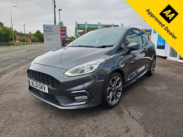 Here we have a 2021 Ford Fiesta ST-Line 3-Door, finished in the sleek and stylish Magnetic Grey — a colour that perfectly complements its sporty looks. With 2 owners from new and a recent service in May 2025 at just 18,742 miles, this car has clearly been cherished and is ready for many more miles of fun. The ST-Line trim gives this Fiesta a bold, athletic edge — inspired by the high-performance Fiesta ST, but with lower running costs and everyday usability. With its sporty body kit, 17-inch alloy wheels, and rear spoiler, its got the look of a hot hatch while still being as practical and efficient as youd expect from a Fiesta. Under the bonnet, youll find Fords award-winning 1.0-litre EcoBoost engine, delivering punchy performance with excellent fuel economy. Its nippy around town, smooth on the motorway, and handles beautifully thanks to the ST-Lines sports-tuned suspension. This is a car thats genuinely fun to drive — agile, responsive, and full of character. Step inside, and the sporty theme continues. The ST-Line interior features sports seats with red stitching, a flat-bottom steering wheel, and Fords intuitive SYNC infotainment system with touchscreen display, Bluetooth, and smartphone connectivity for Apple CarPlay and Android Auto. Everything feels driver-focused and well put together — exactly what youd expect from one of the UKs best-selling hatchbacks. Compact on the outside but surprisingly spacious inside, the 3-door ST-Line strikes the perfect balance between sportiness and practicality. Whether its your daily commute, weekend adventures, or just a car that makes every drive that bit more exciting, this Fiesta delivers. With its stunning looks, low mileage, and that unmistakable Ford driving feel, this 2021 Fiesta ST-Line is a standout example of why the Fiesta continues to top the charts year after year. Highlights: 2021 Ford Fiesta ST-Line 3-Door Magnetic Grey metallic paint 2 owners from new Last serviced May 2025 at 18,742 miles 1.0L EcoBoost petrol engine 17-inch alloy wheels & ST-Line body kit Sports interior with red stitching SYNC infotainment system with Apple CarPlay & Android Auto Sport-tuned suspension for sharper handling Stylish, sporty, and full of fun — this Fiesta ST-Line proves that great things really do come in compact packages..17in Alloy Wheels - ST-Line 5-spoke - Rock Metallic, Air Conditioning - Manual, Airbags - Driver and Front Passenger, Airbags - Front Side Impact, Airbags - Front and Rear Side Curtain, Anti-Lock Braking System - ABS with Electronic Brake Force Distribution - EBD, Automatic Rain Sensing Wipers and Auto-Dimming Rear View Mirror, Black Belt Line Finisher, Black Interior Headlining, Body Colour Bumpers, Centre Console with Armrest and Illuminated Cupholders, Courtesy Light - Front Map Light and Rear - Overhead LED, Cruise Control, Door Handles - Body Colour, Door Lever - Chrome Finish, Door Mirrors - Electrically-Operated and Heated - Power-Foldable with Integrated Side Indicators - Body Colour Housings and Puddle Lights, Driver Seat with Manual Height Adjust, EPAS - Electric Power Assisted Steering, Electric Windows - Front, Electronic Stability Programme - ESP with Hill Start Assist, Emergency Brake Warning - Automatic Hazard Warning Lights, Floor Mats - Front Velour, Ford Easy-Fuel Capless Refuelling System, Ford Navigation System with Ford SYNC 3 - Apple CarPlay and Android Auto and FordPass Connect - Embedded Modem, FordPass Connect Embedded Modem, Front Bumper - Unique ST-Line, Front Seats - Sports Style, Glovebox - Illuminated, IPS - Intelligent Protection System, Keyless Start with Ford Power Start Button, LED Projector Headlights with Daytime Running Lights, Large Rear Spoiler - Body Colour with Centre High Mounted Stop Light, Leather Handbrake and Gearknob, MyKey, NCAP Pack, Overhead Console - Sunglasses Holder, Parking Distance Sensors - Rear, Quickclear Heated Windscreen, Rear Bumper - Unique ST-Line, Rear Fog Lamps, Rear Lights - LED Night Signature, Rear Privacy Glass, Rear Seat - 60-40 Split Back and Cushion, Remote Central-Double Locking, ST-Line Flat-Bottomed Leather Steering Wheel, ST-Line Front Fog Lamps with Cornering Lights, ST-Line Front Scuff Plates, ST-Line Side Skirt Body Mouldings - Body Colour, Seats - Front Passenger 2-Way Adjustment, Seats - ISOFIX Mounting Provision for Child Seats, Selectable Drive Modes, Sports Pedals, Sports Tuned Suspension, Steering Column - Rake and Reach Adjustment, Tailgate Wash-Wipe, Thatcham Category 1 Alarm, Trip Computer, Tyre Pressure Monitoring System - TPMS, Tyre Repair Kit, USB Connection x2, Unique ST-Line Upper Grille and Full Bodystyling Kit with ST-Line Wing Badges, Warning Triangle Storage, Magnetic