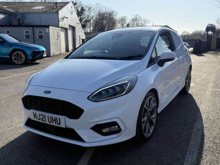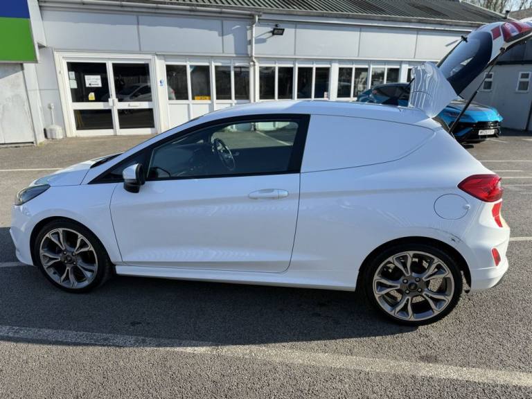 We have just taken in this 2021 Ford Fiesta 1.0T EcoBoost sport Turbo, COMES WITH FULL FORD SERVICE HISTORY, 2 KEYS AND ONE OWNER FROM NEW. The 2021 Ford Fiesta Van 1.0T EcoBoost MHEV Sport is a car-derived van that blends passenger car agility and comfort with practical commercial capability. Its ideal for businesses that need an efficient, compact, and stylish vehicle for urban deliveries, trades, or mobile services. Based on the popular Fiesta hatchback, this version trades rear seats for a load bay, delivering a perfect mix of performance, economy, and practicality. The MHEV system boosts efficiency and smoothness, particularly in stop-start city driving. Though compact, the Fiesta Van offers surprising practicality for small businesses and urban use. The Sport trim adds premium and sporty styling touches inside and out, offering driver comfort on par with a hatchback. It looks more like a hot hatch than a work van — great for businesses that want to project a modern, dynamic image. The Fiesta Van Sport includes a comprehensive suite of safety features as standard, making it safe for city driving. Thanks to the EcoBoost + MHEV setup, it delivers impressive efficiency with lower CO? emissions — ideal for businesses watching the bottom line. Pros: Stylish, sporty appearance Excellent fuel economy (with mild hybrid tech) Surprisingly practical load space Very comfortable and fun to drive Great for city-based businesses Low running costs The 2021 Ford Fiesta Van 1.0T EcoBoost MHEV Sport is a brilliant little workhorse for urban professionals. It brings together hatchback looks and driving dynamics with the functionality of a van, all wrapped up with mild hybrid efficiency and Fords latest tech. WE ALSO OFFER VIDEO CALLS AND WE HAVE MORE PHOTOS AVAILABLE FINANCE AND DELIVERY OPTIONS AVAILABLE PLEASE CONTACT US DIRECT ON [Phone number removed] .Fuel Economy: 50-55 mpg, Rear Parking Sensors, Ford MyKey System, 17-inch Alloy Wheels, Lane Keeping Assist, 17in Alloy Wheels - 5x2-Spoke - Rock Metallic, Active Grille Shutter, Adjustable Speed Limiter, Anti-Lock Braking System - ABS with Electronic Brake Force Distribution - EBD, Automatic Headlights, Bulkhead - Full - Upper Half Mesh - Lower Half Solid, Centre Console - Open Stowage Bins and 12V Front Power Point and Two Cupholders, Door Mirrors - Body Colour Caps, Door Mirrors - Electrically Operated and Heated Integrated Side Indicator - Body Colour Housings, Driver and Passenger Airbags with Passenger Deactivation Switch, EPAS - Electric Power Assisted Steering, EcoCoach, Electronic Stability Control - ESC with Traction Control - Emergency Brake Assist - EBA - Hill Start Assist - HSA, Emergency Brake Warning, Flat Load Floor Board, Fog Lights - Rear, Ford Easy Fuel - Capless Refuelling System, Ford SYNC Radio with DAB, Front Fog Lamps with Cornering Lights, Gearshift Knob Sport - Leather-trimmed with Aluminium Insert and Metal Grey Gaiter Stitching, Glovebox - Illuminated, Handbrake Leather-trimmed with Chrome Gear Knob, Header-mounted Front with Two Map Reading Lights - Theatre Dimming and Sunglasses Holder, Headliner - Woven-Dark, Keyless Start with Ford Power Start Button, LED Projector Headlights with Daytime Running Lights, LED Taillamps, Lane Keeping System, Load Compartment Tie Down Loops, Load Floor Liner, Manual Air Conditioning, Power Door Deadlocks - Double Locking, Power Front Windows with One Touch Up Down, Premium Floor Mats, Quickclear Heated Front Windscreen with Heated Washer Jets, Rake and Reach Adjustable Steering Column, Rear Spoiler - Body Colour, Rear View Mirror, Remote Central Locking with Two Flip Keys, Rocker Panels - Body Colour, Seats - Drivers 4-Way Adjustment, Single Chrome Exhaust, Spare Wheel - 14in Steel, Sports Seats, Sports Style Body Kit, Sports Suspension, Stainless Steel Sports Foot Pedals, Steering Wheel - Leather Sports Style Flat Bottomed, Thatcham Category 1 Alarm with Power Door Deadlocks, Trip Computer, Tyre Pressure Monitoring System, Unique Upper Grille - Bumpers and Side Skirts