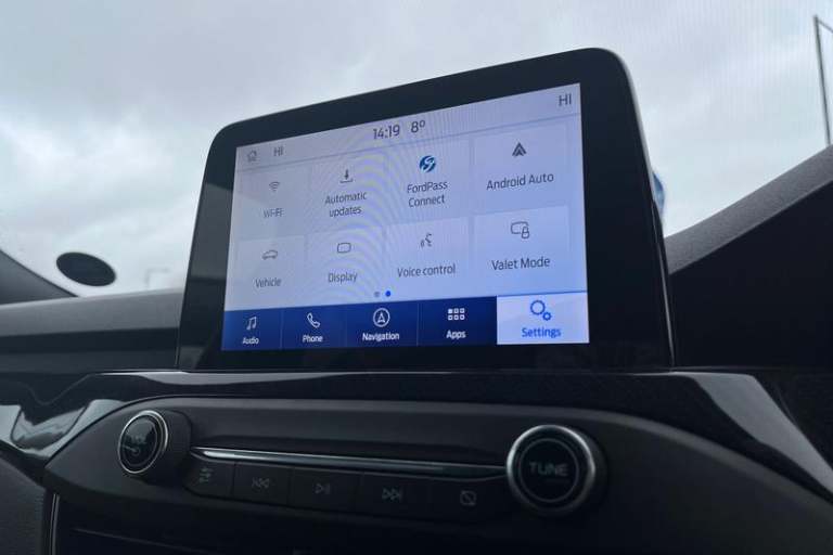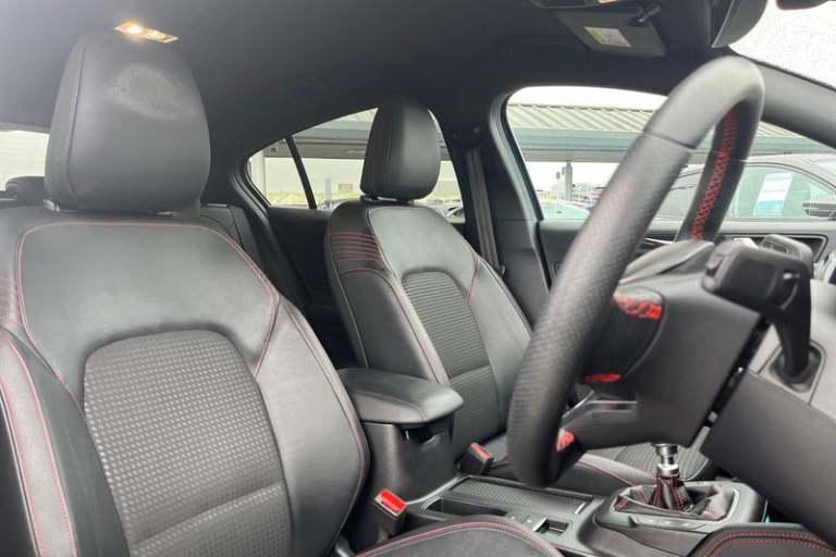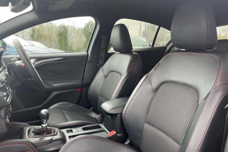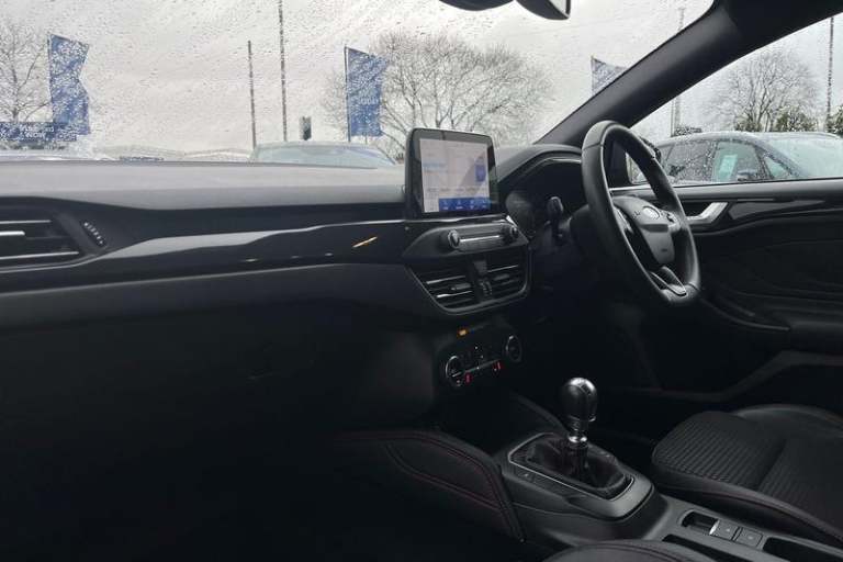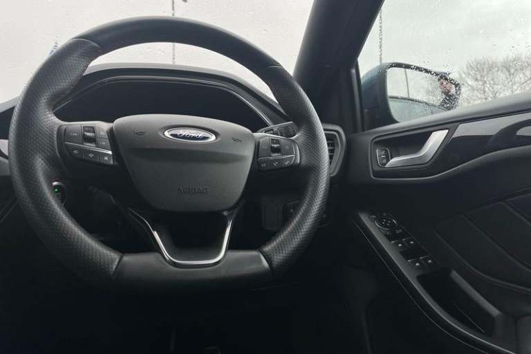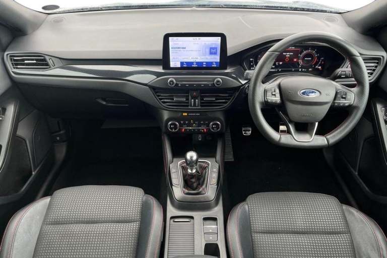 12.3 Digital instrument cluster, Bluetooth system, Digital clock, E-call, Easy fuel capless refuelling system, Eco mode, Ford SYNC 3 navigation with 8 TFT touchscreen, DAB radio and app link Android auto/Apple carplay, Intelligent speed assist, Lane keeping system - lane keeping alert and lane keeping aid, PAS, Selectable drive mode, Trip computer, Auto dimming rear view mirror, Auto headlamps (on/off), Automatic rain sensing wipers, Body colour large rear spoiler, Body coloured bumpers, Body coloured door handles, Body coloured electrically operated and heated door mirrors with side indicators, Electrically operated front and rear windows with one touch opening and closing, Front variable intermittent wipers with electric wash, Heated rear window, LED daytime running lamp, Polished twin tailpipe, Power folding door mirrors with puddle lights, Quickclear heated windscreen, Rear privacy glass, Rear side wing doors, ST-Line upper and lower grille with full body styling kit and wing badges, Tailgate wash/wipe, Third brake light, Unique door and instrument panel inserts, 3 seat bench in 2nd row, 3 spoke flat bottomed Sensico steering wheel with red stitching, 6 way power adjustable driver seat, Aluminium gear knob, Dark headliner, Driver's lumbar support, Dual zone electronic air temperature control, Front and rear floor mats with red stitching, Heated driver and front passenger seats, Heating for Sensico steering wheel, Height adjustable front headrests, Isofix child seat preparation,