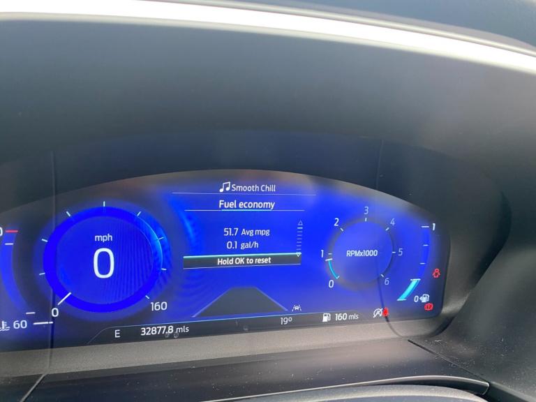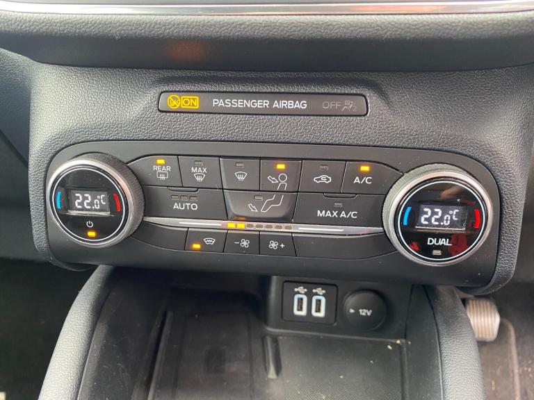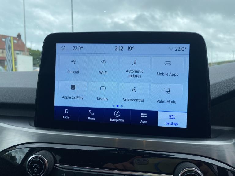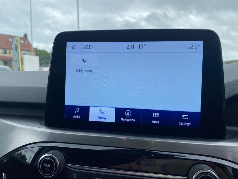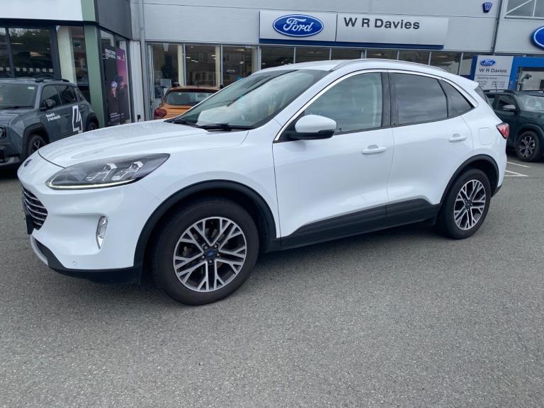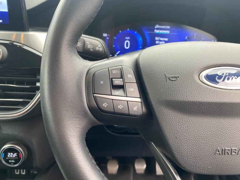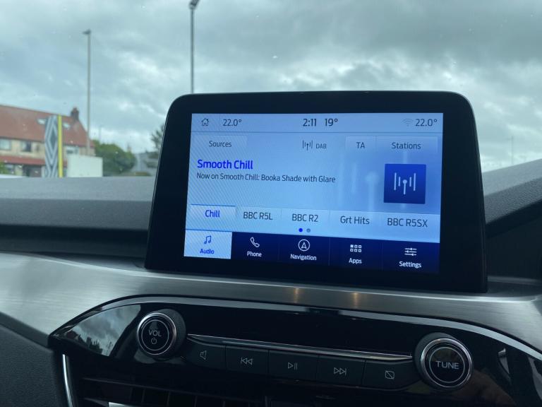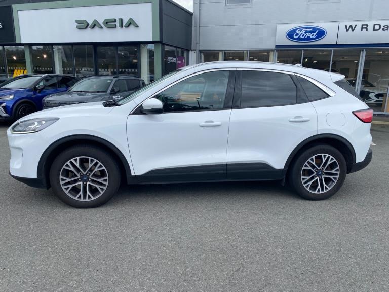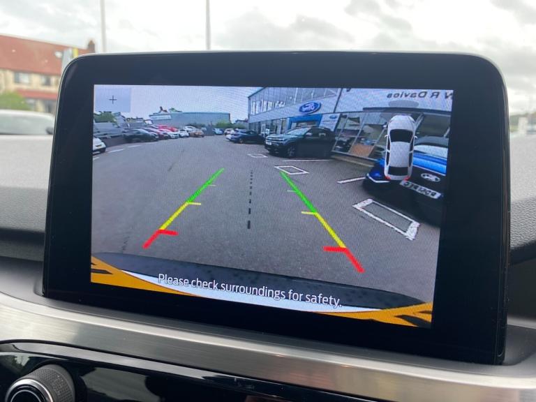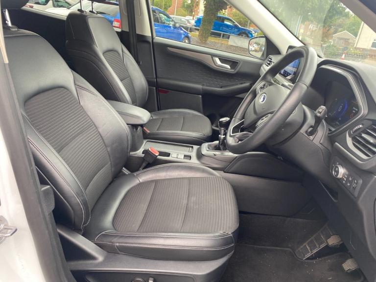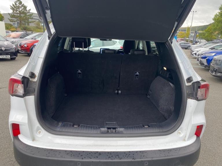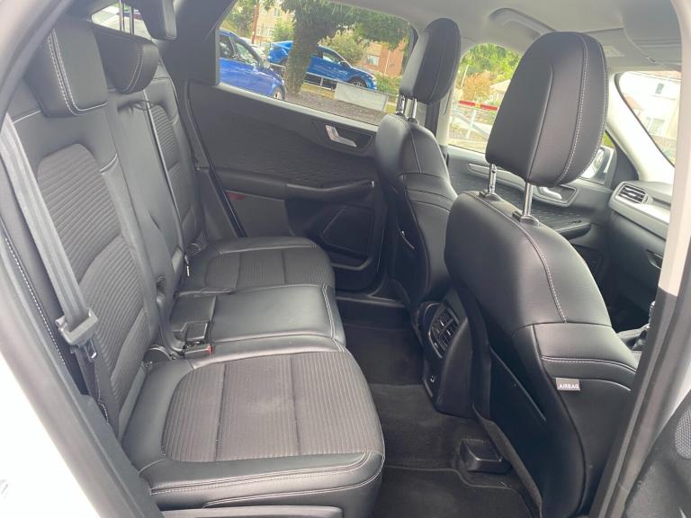 ..Ford easy fuel, Front and rear parking sensors, Hands free power tailgate, Lane keeping aid with lane departure warning, Mobile phone wireless charging pad, Power assist steering, Rear view camera, Selectable drive modes, Auto dimming rear view mirror, Auto headlamps with high and low beam, Auto wipers, Front LED fog lamps, LED daytime running lights, LED rear lights, Power folding heated door mirrors with puddle lights, Power front/rear windows with global close, Privacy glass, Quickclear heated windscreen, Rear spoiler, Silver roof rails, Twin exhausts, 10 way power adjustable drivers seat, 2nd row sliding seats with 60:40 split, 8 way manual passenger seat including lumbar support and height adjust, Ambient lighting, Centre console with electronic parking brake, Dual electronic automatic temperature control, Front and rear floor mats, Front and rear head restraints, Partial premium touch sensico sports seats with ebony cloth inserts, Rear charging point, Salerno partial leather upholstery, B&O with large instrument cluster pack - Kuga, 3x3 point rear seatbelts, Airbags - front driver/passenger, front and rear curtain, Drivers knee airbag, Electronic stability control (ESC) and ABS, Ford MyKey Gen 2 safety system, Manual child proof rear door locks, Post collision braking, Pre collision assist with autonomous emergency braking, Rear seat Occupancy alert, Tyre pressure monitoring system, Engine immobiliser, Keyless entry, Keyless start with 'Ford Power' starter button, Locking wheel nuts, Remote powered central double locking doors, Thatcham category 1 alarm
