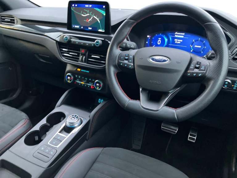 Solar Silver Metallic Paint with Black Interior. 2 Keys. Full Service History - 25/01/23 at 4790 Miles and 07/01/25 at 15099 Miles. Next Due 01/27. This 2021 Ford Kuga ST-Line X Edition offers exceptional value with its remarkably low mileage of just 19,048 miles, having been owned by only one careful keeper. This Four Wheel Drive, 2.0L Diesel model, compliant with Euro 6 emissions standards, combines robust performance with a host of desirable features. Inside, youll find a heated steering wheel for those chilly mornings and heated rear seats for passenger comfort. The ST-Line X Edition also boasts a power opening panoramic roof, flooding the cabin with light, and a rear view camera complemented by front and rear parking sensors, making manoeuvring effortless. This Kuga stands out with its impressive fuel economy, achieving a highlight of 50 miles per gallon, which is better than many similar vehicles. Its acceleration is also noteworthy, reaching 0-62mph in just 8.7 seconds, demonstrating a strong balance of efficiency and responsiveness. Furthermore, its low insurance group rating indicates that running costs are kept to a minimum, making this Ford Kuga ST-Line X Edition an economically sensible choice for everyday driving. This Vehicle is Available with Excellent Finance and Extended Warranty Options.