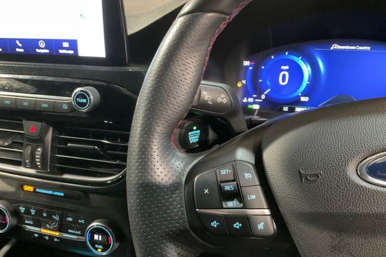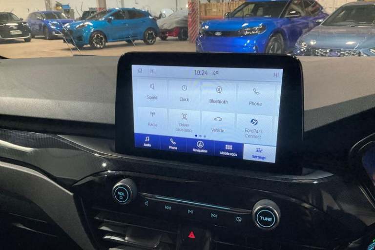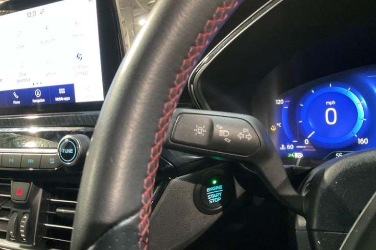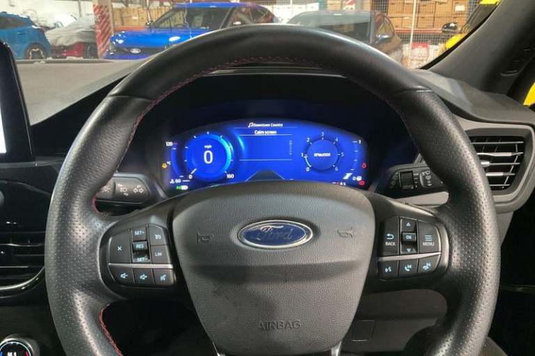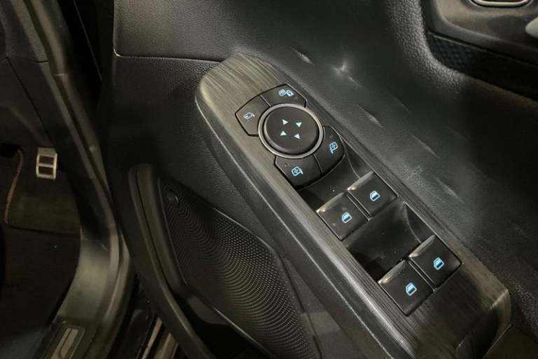 12.3 digital colour instrument cluster, Ford easy fuel, Ford SYNC 3 with 8 TFT LCD touchscreen, App Link, andriod auto/apple carPlay, emergency assistance and navigation with Ford pass connect, Front and rear parking sensors, Hands free power tailgate, Lane keeping aid with lane departure warning, Power assist steering, Rear view camera, Selectable drive modes, Service interval indicator, Auto headlamps with high and low beam, Black roof rails, Day/night rear view mirror, Front LED fog lamps, Large rear spoiler, LED daytime running lights, LED rear lights, Power folding heated door mirrors with puddle lights, Power front/rear windows with global close, Privacy glass, Quickclear heated windscreen, ST Line body styling kit with unique front and rear fascia and bumper, rear painted diffuser, front painted skid plates, dark mesh upper grille, ST Line front scuff plates, Third brake light, Twin exhausts, 10 way power adjustable drivers seat, 2nd row sliding seats with 60:40 split, 8 way manual passenger seat including lumbar support and height adjust, Alloy pedals, Centre console with electronic parking brake, Dark headlining and pillars, Dual electronic automatic temperature control, Flat bottomed leather steering wheel in sensico with red stitching, Front and rear head restraints, Partial premium touch sensico leather upholstery with black cloth inserts and red stitching, Rear charging point, Sports seats, ST Line front and rear floor mats, ST Line gear knob, 3x3 point rear