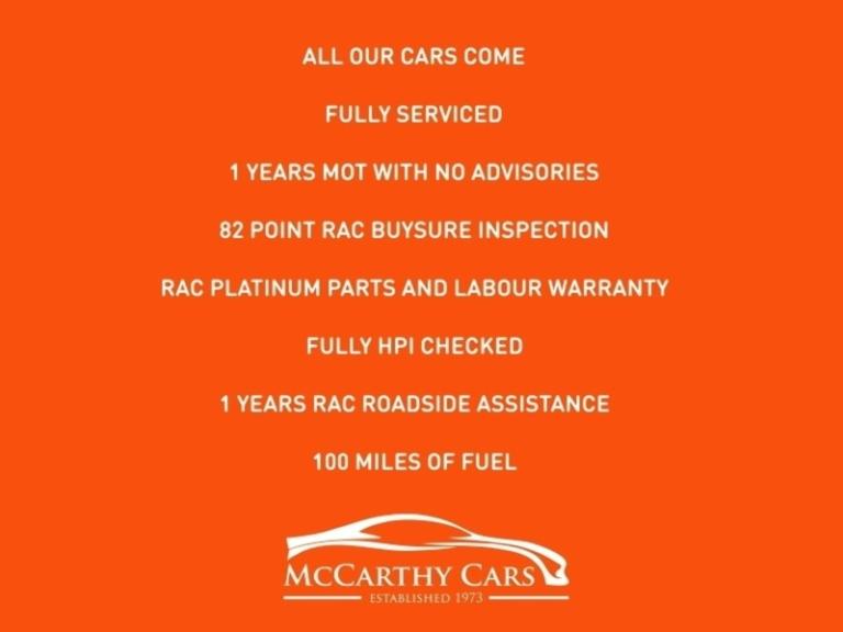 Have complete peace of mind, with the McCarthy Cars Promise, All our vehicles are HPI Checked, a copy of the certificate is given with each vehicle, and mileage checked against the National Mileage Register.