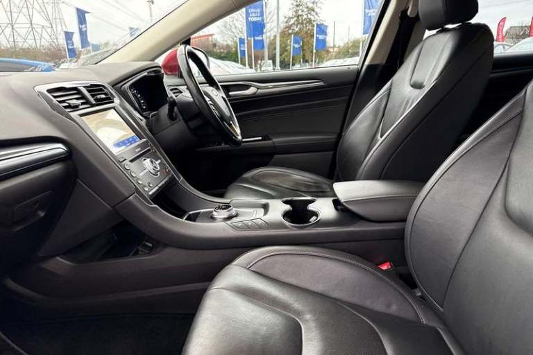 Drivers Assistance Pack, BLIS Blind Spot Information System, Adaptive Cruise Control, Reversing Camera , Heated Seats, Heated Steering Wheel, Sony Sound System , Full Leather Seats, Electric Memory Seats, Satellite Navigation System, Front + Rear Parking Sensors , Dual Zone Climate Control, Privacy Glass, Cruise Control + Speed Limiter, Push Button Start, Lane keeping aid, Quickclear heated front windscreen, 10 TFT cluster display, Emergency call service, Ford easy fuel, PAS, Service indicator, SYNC Emergency Assistance, Traffic sign recognition, Trip computer, 3rd brake light, Auto dimming rear view mirror, Automatic headlights with auto high/low beam, Body colour bumper and side rocker mouldings, Bright finish front door scuff plates, Electric adjustable door mirrors, Front fog lights, Heated door mirrors, LED daytime running lights, LED tail lights, Power folding door mirrors with puddle lights adjustment memory and auto dipping when reversing, Power operated front and rear windows with global open and close, Rain sensing front windscreen wipers, Rear side wing doors, Rear wiper, 5 seats, Centre console with armrest, Driver's lumbar support, Folding rear seats, Front headrests, Isofix child seat attachment, Multi colour ambient lighting, Rake/reach adjustable steering wheel, Rear armrest, Rear headrests, 3x3 point rear seatbelts, ABS+EBA, Active city stop, Curtain airbags, Driver/front passenger airbag, Drivers knee airbag, Electric parking brake, ESP + traction control,