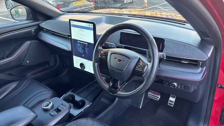 Vertu Ford Durham are delighted to have this stynning Ford Mach-E Extended range AWD, finished in Lucid red pearl paint. This Mach-E is the ultimate in refinement combining a great reange with unbelievable performance. All our vehicles at Vertu Motors come fully prepared with our peace of mind Main Dealer guarantee. Every vehicle is fully prepared both mechanically and cosmetically up to the highest standard which even includes having any tyre replaced that has less than 3mm tread depth (legal limit is 1.6mm). Every vehicle will have a minimum of 9 months MOT remaining and you will not have to service the vehicle for at least 6 months or 6000 miles. We ensure that you will have a minimum of 2 keys and to give you even further reassurance we also supply you with a 3 months complimentary warranty and a 14-day money back guarantee. Our vehicles also come with a full HPI vehicle check assuring you that your new vehicle will have no registered accident claims reported, or any outstanding finance, it also shows the vehicle has not been imported. In addition to this we also do a full Government VOSA report check to verify the mileage on all cars over 3 years old. This service comes free of charge to all our customers unlike other main dealers who charge you an admin fee for this service. We also offer nationwide delivery on all our vehicles, so call today to arrange a viewing..Air Conditioning, Climate Control, Metallic Paint, Cruise Control, Satellite Navigation, Leather Seats, Heated Seats, DAB Radio, Bluetooth, Panoramic Roof, Parking Sensors, Heated Front Windscreen, USB, Electric Seats, Memory Seats, Diamond Cut Alloy Wheels, Adaptive cruise, Keyless Entry-Push Button Start, Apple-Android Play, Rear Camera, Electric Opening Tailgate, Auto Lights, Electric Folding Mirrors, Lane Departure& Rain Sensors, Quickclear heated windscreen, ABS, Applink remote control system, Electric power steering, Hands free tailgate, Trip computer, Black power folding door mirrors with Mustang logo projection puddle lamps, Ford vario power charging cable, B and O premium sound system 10 speaker including dashboard sound bar, Body colour bumpers, Adaptive LED Mustang signature headllamps, Dual electronic automatic temperature control, Heated steering wheel, 3 point rear seatbelts, Rear head restraints, Thatcham Cat.1 alarm, 19"" Black machined alloy wheels