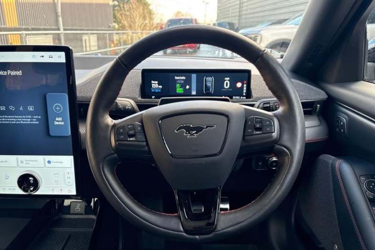 10.2in Full Digital Cluster and 15.5in Central Touch Screen, 19in Alloy Wheels - Black Machined, 360 Degree Camera, 8-Way Power Driver and Passenger Seats, ABS - Anti-lock Braking System, Adaptive Cruise Control with Stop and Go and Lane-Centering, Adaptive LED Mustang Signature Headlamps, Advanced Active Park Assist, Air Conditioning - Dual Zone Electronic Automatic Temperature Control, Airbags - Driver and Front Passenger, Applink Remote Control System, B+O Premium Sound System - 10-Speaker including Dashboard Sound Bar, BLIS - Blind Spot Information System with Cross Traffic Alert, Black Powerfold Mirrors with Puddle Light Mustang Logo Projection, Blade Front Grille Design, Body Colour Bumpers, Dark Headliner, E-Latch Keyless Entry System including B-Pillar Keypad Access, Electric Windows - Front, FordPass Connect Embedded Modem, Front Trunk, Front and Rear Parking Sensors, Full Panorama Roof, Hands-Free Tailgate, Heated Driver and Passenger Seats, Heated Steering Wheel, High Power Charging Cable, Home Charging Cable, LED Mustang Signature Taillights, Lane Keeping Aid with Lane Departure Warning, One Pedal Drive, Power Steering, Pre-Collision Assist with Forward Collision Warning-Dynamic Brake Support-Autonomous Emergency Braking, Privacy Glass, Quickclear Heated Windscreen, Rear View Camera, Red Brake Calipers, SYNC with Connected Navigation and Natural Voice Search, Selectable Drive Modes - Active-Whisper-Untamed, Side Cladding and Wheel Arches Piano Black, Thatcham Category