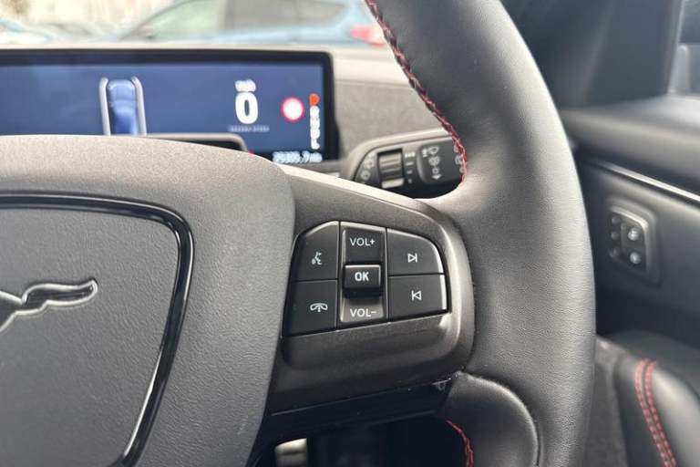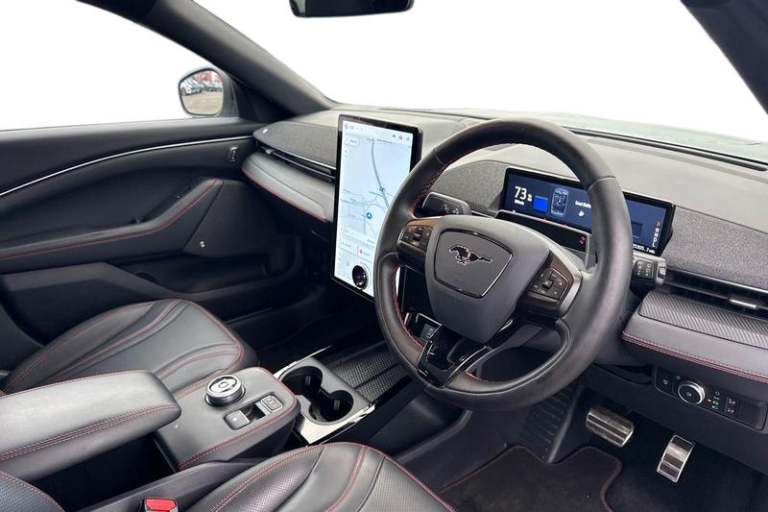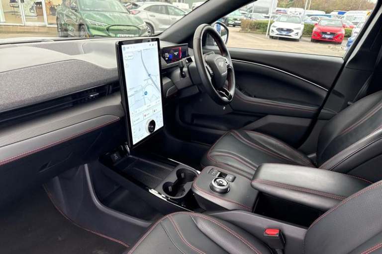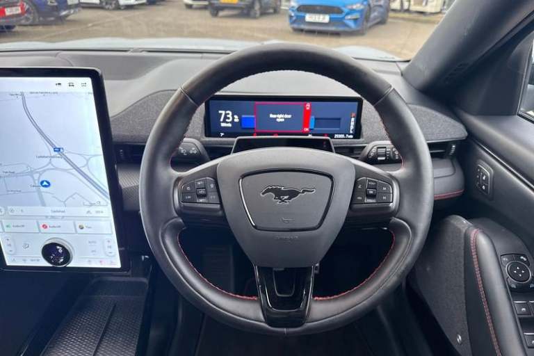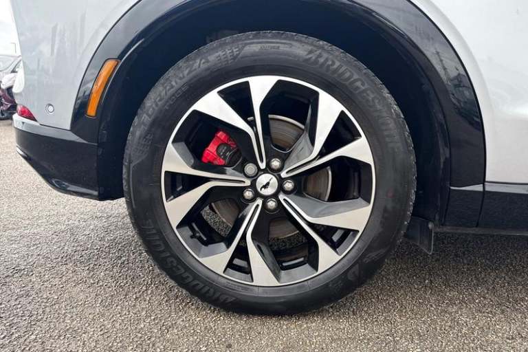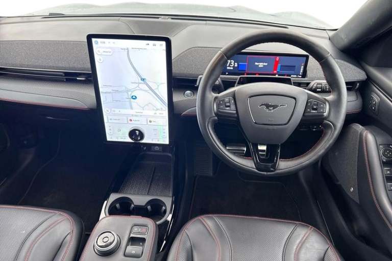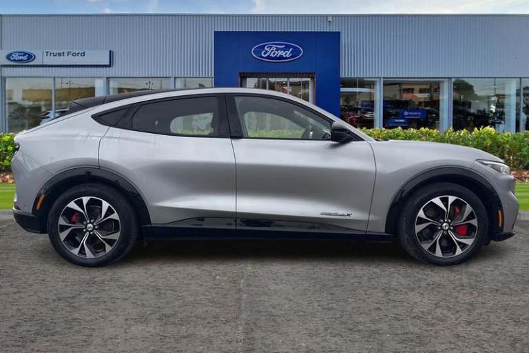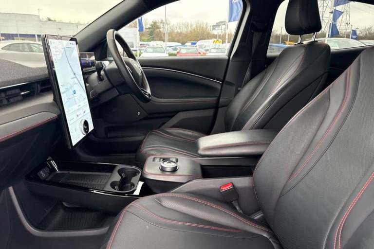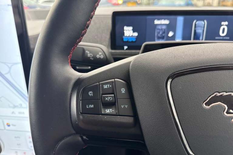 BLIS Blind Spot Information System, Adaptive Cruise Control, Panoramic Glass Roof , Heated Seats, Heated Steering Wheel, Bang Olufsen Sound System , Full Leather Seats, 360 Camera, Power Tailgate, Satellite Navigation System, Charging Mat, Front + Rear Parking Sensors , Dual Zone Climate Control, Push Button Start, Climate Control, Privacy Glass, Cruise Control + Speed Limiter, 10.2 full digital cluster and 15.5 central touch screen, Adaptive LED Mustang signature headllamps, Lane departure warning with lane keeping aid, Applink remote control system, Distance alert and indication system, Electric power steering, Emergency services call system, Ford pass connect embedded modem, Selectable drive modes - active, whisper and untamed, Trip computer, 3rd brake light, Black power folding door mirrors with Mustang logo projection puddle lamps, Blade front grille design, Body colour bumpers, Daytime running lights, LED signature tail lights, Quickclear heated windscreen, Rear side wing doors, Rear wiper, Side cladding and wheel arches in piano black, 3 seat bench in 2nd row, Ambient lighting, Dual zone electronic air temperature control, Front headrests, Front trunk, One pedal drive, Rear head restraints, Single front passenger seat, 3 point rear seatbelts, ABS, Child locks on rear doors, ESP, Evasive steering assist, Pre collision assist with Forward Collision Warning (FCW), Dynamic Brake Support (DBS), Autonomous Emergency Braking (AEB), Red brake callipers
