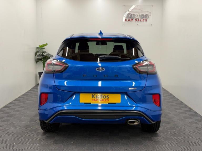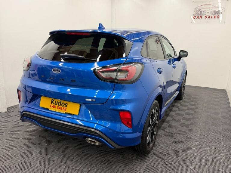 2021 FORD PUMA 1.0 EcoBoost Hybrid mHEV 155 ST-Line X 5dr - EXCEPTIONAL EXAMPLE AND FINISHED IN THE MOST STUNNING COLOUR, DESERT ISLAND BLUE. FINANCE AVAILABLE FROM ONLY £243 per mth. EACH VEHICLE COMES WITH A FREE HPI CLEAR REPORT AND 1 YEAR AA BREAKDOWN COVER. HEAD TURNING CAR AND IN FANTASTIC CONDITION. ***ULEZ***ONLY 56200 MILES. MOT UNTIL 04/01/2027 WITH NO ADVISORIES.**HUGE SPEC** HALF LEATHER AND SUEDE INTERIOR, FLAT BOTTOM STEERING WHEEL, DRIVING MODE SELECT [ SPORT- NORM - ECO ] TOUCH SCREEN SATNAV, CRUISE CONTROL, INDIVIDUAL CLIMATE CONTROL, AIRCON, REAR CAMERA AND PARKING SENSORS, ST-Line STYLE PACK, KEYLESS PUSH BUTTON START, B&O SPEAKER UPGRADE PACK, BLUETOOTH, DAB RADIO, LED DAYTIME LIGHTS, AUTO LIGHTS AND WIPERS, HEATED WINDSCREEN, POWER FOLDING MIRRORS, ELEC WINDOWS AND MIRRORS, UNMARKED 18'' ALLOY WHEELS. FINANCE PACKAGES - With a number of lenders on board i am able to offer Finance to suit individual circumstances, including Sub Prime. All CARS ARE HPI CHECKED AND CLEAR. WARRANTY - At KUDOS CAR SALES every vehicle comes with a FREE warranty through Warranty Wise. Any repairs under warranty can be carried out at your local garage - Extended warranty available on request at extra cost. COMES WITH ALL THE DOCS AND BOOKS, 2 KEYS AND LOCKING WHEEL NUT. ***ALL PART EXCHANGE'S CONSIDERED***