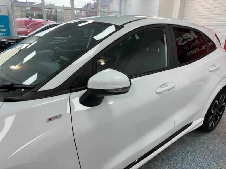 .12 Month MOT!, The car will come with a full service!, Tyres less than 3mm will be changed!, 3 Months or 3k Miles Warranty!, Family Business for over 60 Years!, 18in Alloy Wheels - 5-Spoke - Matt Black Machined Finish, Acoustic Laminated Windscreen, Active Grille Shutter, Electric Windows - Front and Rear, Front Bumper - Unique ST-Line Sport Design - Body Colour, Large Rear Spoiler - Body Colour with Centre High Mounted Stop Light, Locking Wheel Nuts, Lower Bodyside Moulding - Body Colour, Power-Foldable Heated Door Mirrors with Puddle Lamps, Privacy Glass, Puma Badge, Quickclear Heated Windscreen, Rear Bumper Body Colour - Diffuser, ST-Line Badge, ST-Line Body Styling Kit, Tyre Inflation Kit, ABS - Anti-lock Braking System, Cruise Control - Lane Keeping Aid and Lane Departure Warning, Driver Impairment Monitor, ESC - Electronic Stability Control and Hill Start Assist, Emergency Brake Warning - Automatic Hazard Warning Lights, First Aid Kit Strap, Post Collision Braking, Pre-Collision Assist with Autonomous Emergency Braking and Pedestrian-Cyclist Detection, Rear Parking Sensors, Remote Central-Double Locking, Speed Sign Recognition, Thatcham Alarm, Trip-Fuel Computer, Tyre Pressure Monitoring System - TPMS, Automatic Dimming Rear View Mirror, Carbon-Look Interior Deco Spears, Centre Console with Armrest - Stowage, Courtesy Lights - Ambient LED Courtesy Lighting - Single Colour, Driver and Passenger Seat Lumbar and Height Adjustment, Electronic Air Temperature Control - EATC, Floor Mats - Front and Rear, Ford Easy Fuel System, Ford MegaBox Extended Bootspace, Ford Power Starter Button, Front Seats - Sports Style, Full Digital 12.3in Instrument Cluster, Gearshift Knob - Soft Feel with Red Stitching, Headliner - Deluxe, Instrument Panel - High Level, Rear Seats - 2-Way Head Restraint Up-Down, Rear Seats - Second Row 60-40 Folding Seats, Restrain Device Pack, ST-Lined Flat-Bottomed Premium Sensico Steering Wheel - Handbrake and Aluminium Gear Knob, Stainless Steel Pedal Covers with Rubber Inserts, Automatic Headlights with Rain-Sensing Wipers and Auto High Beam, B&O Premium Audio System and Ford SYNC 3 Navigation, Front Fog Lights with Cornering lights and LED Rear Lamps, Intelligent Speed Assistance, Power Steering, Projector Headlamps with LED Daytime Running Lights, Selectable Driving Modes - Normal - Eco - Sport - Slippery and Trail, Speed Limiter, Sports Suspension, Wireless Charging, Wireless Charging Pad with Electronic Air Temperature Control EATC