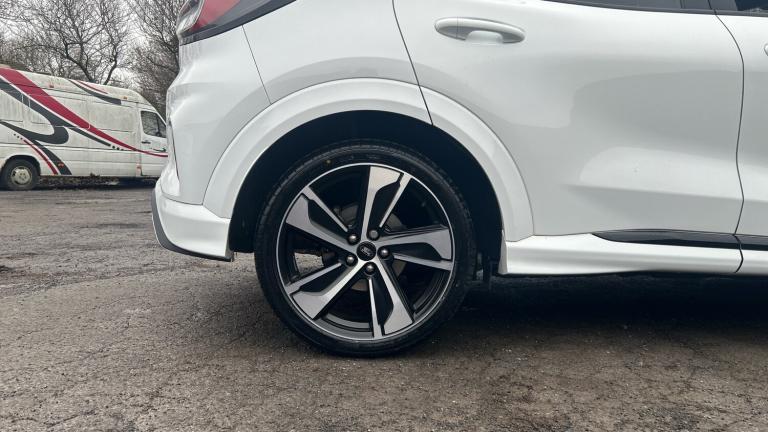 Ford Durham are pleased to offer this February 2021 registered Puma ST-Line X in Frozen white paint work. This Puma benefits from a very low mileage of 18538 form new and comes extremely well equipped with driver luxuries and ST Line bodystyling. All our vehicles at Vertu Motors come fully prepared with our peace of mind Main Dealer guarantee. Every vehicle is fully prepared both mechanically and cosmetically up to the highest standard which even includes having any tyre replaced that has less than 3mm tread depth (legal limit is 1.6mm). Every vehicle will have a minimum of 9 months MOT remaining and you will not have to service the vehicle for at least 6 months or 6000 miles. We ensure that you will have a minimum of 2 keys and to give you even further reassurance we also supply you with a 3 months complimentary warranty and a 14-day money back guarantee. Our vehicles also come with a full HPI vehicle check assuring you that your new vehicle will have no registered accident claims reported, or any outstanding finance, it also shows the vehicle has not been imported. In addition to this we also do a full Government VOSA report check to verify the mileage on all cars over 3 years old. This service comes free of charge to all our customers unlike other main dealers who charge you an admin fee for this service. We also offer nationwide delivery on all our vehicles, so call today to arrange a viewing..Air Conditioning, Metallic Paint, Cruise Control, Satellite Navigation, Alloy Wheels, Leather Seats, Heated Seats, DAB Radio, Bluetooth, Parking Sensors, Stop Start, Heated Front Windscreen, Low Mileage, Full Service History, USB, Diamond Cut Alloy Wheels, Keyless Entry-Push Button Start, Apple-Android Play, Auto Lights, Electric Folding Mirrors, Xenon Head Lights, Head Lamp Wash, Lane Departure& Rain Sensors, Front floor mats, Quickclear heated windscreen, Privacy glass to side rear windows and tailgate glass, Rear wiper, Automatic rain sensing wipers, Electronic stability control (ESC) and hill start assist, Pedestrian/cyclist detection & post-collision braking, Pre collision Assist system, Sport suspension, Rear parking sensor, Lane keeping aid with lane departure warning, Power assist steering, Speed sign recognition, Driver impairment monitor, Ford easy fuel, Selectable drive modes(Normal, sport, Eco, trail, slippery), Power start button