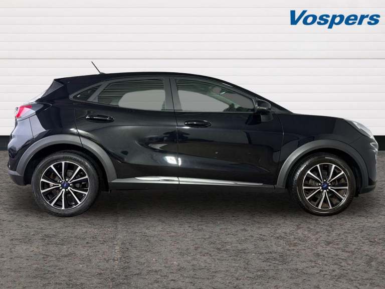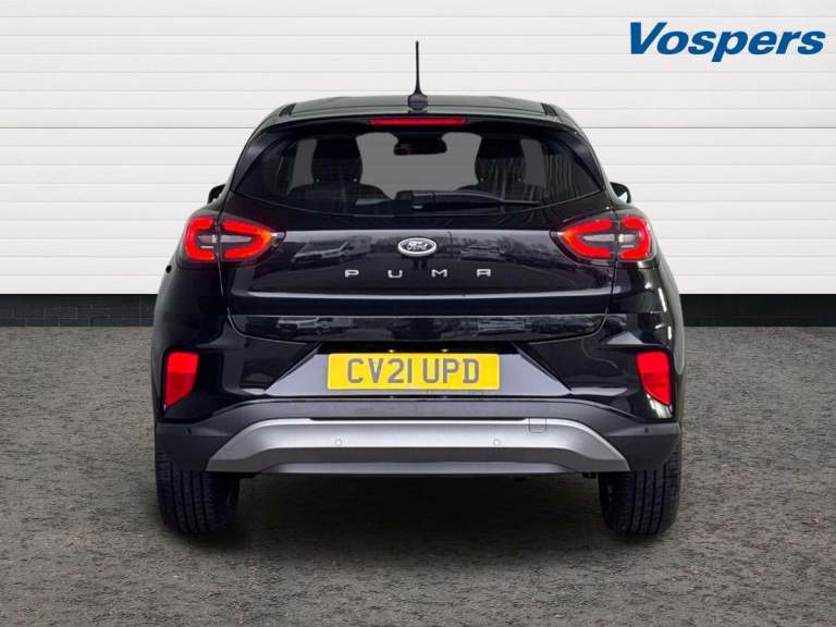 .2021 Ford Puma Titanium Key Features: Ford SYNC 3 Navigation with Apple CarPlay & Android Auto Handsfree power tailgate & keyless entry Rear parking sensors & quickclear heated windscreen Leather-trimmed steering wheel, gear knob & handbrake Wireless charging pad & EATC This 2021 Ford Puma T Titanium is a stylish and practical compact SUV with just 18,729 miles from its one careful owner. Manufacturer approved by Ford, it combines efficiency, convenience, and premium touches in a versatile package. The 1.0 litre petrol engine offers smooth performance while delivering up to 46mpg, keeping running costs low and emissions minimal. Inside, enjoy the convenience of a handsfree power tailgate, keyless entry, and a Ford SYNC 3 Navigation system with Apple CarPlay, Android Auto, and Bluetooth connectivity. Wireless charging, leather-trimmed controls, and Electronic Air Temperature Control (EATC) ensure comfort and modern practicality on every journey. Finished with rear parking sensors, quickclear heated windscreen, and a spacious Ford MegaBox boot, this Puma is ready to drive away today. Flexible finance, part exchange, and full preparation are all available for a smooth, worry-free purchase..Ford easy fuel, Lane keeping aid with lane departure warning, Power assist steering, Rear parking sensor, Selectable drive modes(Normal, Eco, Sport, Slippery and Trail), Body coloured door mirrors, Front fog lights with cornering lights and LED rear lamps, Power foldable heated door mirrors with puddle lamps, Quickclear heated windscreen, Rear wiper, Centre console with armrest and stowage, Cloth upholstery, EATC - Electronic Auto Temperature control, Ford megabox extended bootspace, Front and rear head restraints, Front floor mats, Leather steering wheel/gear knob/handbrake, 3 rear seatbelts, Electronic stability control (ESC) and hill start assist, Pre-collision assist with autonomous emergency braking, pedestrian/cyclist detection & post-collision braking, Tyre pressure monitoring system (TPMS), Thatcham alarm, 17'' 10 spoke absolute black machined finish alloy wheel