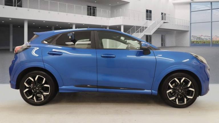 Why This Ford Puma ST-Line Wins? This 2021 Ford Puma ST-Line X offers an exceptional combination of style, technology, and efficiency. Powered by a responsive and efficient 1.0 litre petrol engine that meets Euro 6 emission standards, it delivers a smooth and economical driving experience. The ST-Line X trim adds sporty styling and premium touches, making this Puma a standout choice in the compact SUV segment. Inside, the cabin is packed with modern features designed for convenience and entertainment. Rear parking sensors make manoeuvring effortless, while electronic air temperature control ensures a comfortable environment for all occupants. The advanced Ford SYNC 3 Navigation system provides seamless Android Auto and Apple CarPlay integration, and the premium B&O sound system delivers high-quality audio for an enjoyable driving experience. Wireless phone charging adds an extra layer of convenience, keeping your devices powered on the go. Your Peace of Mind? - Clear vehicle history check - Optional 3-36-month extendable warranties - Free 12-month AA roadside assistance - Fully prepared to showroom standard with its existing MOT and servicing, and we can organise any further MOT or service enhancements at your request. - Drive Away, Insurance Available - No hidden or extra costs, like admin fees Autotraders 2024 Insights: Top 3 Puma ST-Line Buyer Priorities: - Stylish and sporty design - Modern connectivity and entertainment features - Fuel efficiency and low running costs - This Puma excels across all priorities—offering up to 52 mpg fuel economy, low CO2 emissions, a feature-rich cabin with advanced connectivity, and the sporty ST-Line X design, making it a well-rounded and desirable compact SUV. Stress-Free Next Steps: - Free Part Exchange Valuation - £0 Deposit Car Finance - Includes free credit checker - Reserve for £99 - Fully refundable.B&O Premium Audio System and Ford SYNC 3 Navigation, Wireless Charging, Wireless Charging Pad with Electronic Air Temperature Control EATC, 18in Alloy Wheels - 5-Spoke - Matt Black Machined Finish, Acoustic Laminated Windscreen, Active Grille Shutter, Electric Windows - Front and Rear, Ford Easy Fuel System, Front Bumper - Unique ST-Line Sport Design - Body Colour, Large Rear Spoiler - Body Colour with Centre High Mounted Stop Light, Locking Wheel Nuts, Lower Bodyside Moulding - Body Colour, Power-Foldable Heated Door Mirrors with Puddle Lamps, Privacy Glass, Puma Badge, Quickclear Heated Windscreen, Rear Bumper Body Colour - Diffuser, ST-Line Badge, ST-Line Body Styling Kit, Tyre Inflation Kit, Automatic Dimming Rear View Mirror, Carbon-Look Interior Deco Spears, Centre Console with Armrest - Stowage, Courtesy Lights - Ambient LED Courtesy Lighting - Single Colour, Driver and Passenger Seat Lumbar and Height Adjustment, Electronic Air Temperature Control - EATC, Floor Mats - Front and Rear, Ford MegaBox Extended Bootspace, Ford Power Starter Button, Front Seats - Sports Style, Full Digital 12.3in Instrument Cluster, Gearshift Knob - Soft Feel with Red Stitching, Headliner - Deluxe, Instrument Panel - High Level, Rear Seats - 2-Way Head Restraint Up-Down, Rear Seats - Second Row 60-40 Folding Seats, Restrain Device Pack, ST-Lined Flat-Bottomed Premium Sensico Steering Wheel - Handbrake and Aluminium Gear Knob, Stainless Steel Pedal Covers with Rubber Inserts, Automatic Headlights with Rain-Sensing Wipers and Auto High Beam, Front Fog Lights with Cornering lights and LED Rear Lamps, Intelligent Speed Assistance, Power Steering, Projector Headlamps with LED Daytime Running Lights, Selectable Driving Modes - Normal - Eco - Sport - Slippery and Trail, Speed Limiter, Sports Suspension, Desert Island Blue, Partial Premium Sensico - Black with Red Stitching, ABS - Anti-lock Braking System, Cruise Control - Lane Keeping Aid and Lane Departure Warning, Driver Assistance Pack - Design, Driver Impairment Monitor, ESC - Electronic Stability Control and Hill Start Assist, Emergency Brake Warning - Automatic Hazard Warning Lights, First Aid Kit Strap, Post Collision Braking, Pre-Collision Assist with Autonomous Emergency Braking and Pedestrian-Cyclist Detection, Rear Parking Sensors, Remote Central-Double Locking, Speed Sign Recognition, Thatcham Alarm, Trip-Fuel Computer, Tyre Pressure Monitoring System - TPMS