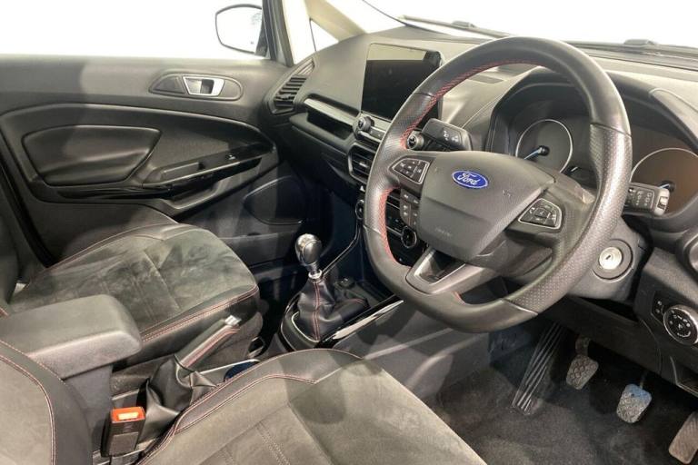 This 2022 Ford EcoSport ST Line T is a standout choice, boasting exceptionally low mileage of just 9210 miles from its single owner. This stylish SUV is powered by an efficient 1.0L petrol engine, meeting Euro 6 emissions standards. It comes equipped with modern conveniences such as LED low beam headlights and automatic headlights for enhanced visibility. Navigating and parking are made simpler with the inclusion of a rear view camera pack, rear parking sensors, and the Ford SYNC 3 navigation system featuring an 8 inch touchscreen that seamlessly integrates with Android Auto and Apple CarPlay. The impressive fuel economy of 46 mpg, combined with its low CO2 emissions, positions this EcoSport favourably against other vehicles in its class, offering a more economical and environmentally conscious driving experience. This well maintained example represents excellent value, combining practicality with a sporty ST Line trim and a host of desirable features. Lifetime warranty available on this car, plus a £1,000 finance contribution when you part exchange. Voted UK Car Supermarket of the Year two years running, we offer 0% finance, part exchange, and lifetime warranties across our entire range. Every car is thoroughly inspected before sale and comes with a full history check, so you can buy with complete peace of mind. Buy with confidence on our best finance rates. Proud winners of the CarGurus Top-Rated Dealer 2022 and the MotoNovo Extra Mile Award. .17in Alloy Wheels - 5 Spoke Dark Tarnish, Adjustable Boot Load Floor, Air Conditioning - Electronic Automatic Temperature Control - EATC, Airbags - Curtain, Airbags - Driver and Front Passenger, Airbags - Drivers Knee, Airbags - Front Passenger De-Activation Switch, Alarm - Thatcham Category 1 with Volume Sensing and Perimeter, Ambient Lighting, Analogue Instrument Cluster, Anti-Lock Braking System - ABS with Electronic Stability Control - ESC, Auto-Dimming Electrochromic Rear-View Mirror, Automatic Headlights, Black Roof Rails, Centre Console - Sliding Armrest, Centre Console Cup Holder with Chrome Accent, Child Locks, Courtesy Light - Front with Two Map Lights, Courtesy Light - Rear, Cruise Control, Door Frame Beltline - Black, Door Handles - Body Colour, Door Mirrors - Body Colour Housing, Door Mirrors - Electrically Operated and Heated, Driver and Passengers Sun Visor with Covered Vanity Mirror and Ticket Strip on Drivers Side, Driver Seat Manual Rotary Knob Lumbar Support Adjustment, Drivers Seat Height Adjust, Drivers Stowage Glovebox, Electric Windows - Front, Electric Windows - Rear, Emergency Assistance, Engine Immobiliser, EPAS - Electric Power Assisted Steering, ESP - Electronic Stability Programme with Hill Launch Assist, Ford Easy Fuel - Capless Refuelling System, Ford SYNC 3 Navigation with 8in Touchscreen, Front and Rear Bumper - Body Colour with Dark Sport Insert, Front and Rear Folding Grab Handles, Front and Rear Power Points - 12V, Front Fog Lights, Front Fog Lights and Turn Indication Light Bezel - Body Colour, Front Grille Bars and Surround - Ebony Black, Front Seat - Passenger Manual - Fore-Aft and Recline Adjustment, Front Seat - Under Passenger Seat Stowage, Front Seats - 2-Way Head Restraint Up-Down, Front Seats - 3 Point Seat Belts with Load Limiter and Seatbelt Height Adjust, Front Seats - Seat-Back Map Pockets, Front Suspension - Independent with MacPherson Struts and Anti-Roll Bar, Full Length Overhead Console with Sunglasses Holder, Gear Shift Indicator, Gearshift Knob - Leather-Trimmed with Black Insert and Aluminium-Finish Ring and Red Stitching, Halogen Rear Lights, Headlights - Courtesy Delay, Headlights - Levelling Control, High Mounted Brake Light, IPS - Intelligent Protection System, Large Rear Spoiler, LED Daytime Running Lights, LED Low Beam Headlights, Load Compartment - Lights, Load Compartment Carpet, Load Compartment Side Trim Incorporating Shopping Hooks, Lower Body Side - Door Claddings - Body Colour, Manual Par