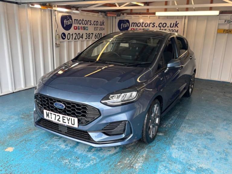 2 KEYS+1 FORMER KEEPER+HISTORY+PARK CONTROL+ALLOYS+BLUETOOTH+MEDIA+NAV+AIRCON+USB+AUX+DAB+CRUISE+HPI CLEAR+VOSA MOT HISTORY,+FULL DEALER FACILITIES+GOOD MPG+The car is in very good condition in and out . Bodywork and interior clean for age and mileage . Interior is clean and tyres good ,Engine and gearbox in good order. This 2022 Ford Fiesta ST-Line offers excellent peace of mind with its MOT valid until November 2026. Powered by an efficient 1.0L petrol engine and meeting Euro 6 emissions standards, this ST Line variant combines sporty styling with practicality. Inside, youll find the user friendly SYNC 3 system with navigation, seamlessly integrating your smartphone via Android Auto and Apple CarPlay. Comfort is assured with manual air conditioning, while the LED headlights, complete with daytime running lights and integrated fog lights, provide excellent visibility. Manoeuvring is made easier thanks to the rear parking distance sensors. The Ford Fiesta ST-Line stands out with its comprehensive technology and safety features. The inclusion of SYNC 3 with navigation, along with Android Auto and Apple CarPlay, offers a superior connected driving experience compared to many other vehicles in its class. The LED headlights and rear parking sensors further enhance both safety and convenience, demonstrating a higher level of specification that sets this 2022 Fiesta apart. WE AS A COMPANY PRIDE OURSELVES IN GIVING THE BEST POSSIBLE SERVICE AS OUR 1000,S OF GREAT REVIEWS SHOW , SEE OUR TESTIMONIALS PAGE AT WWW.FISHMOTORS.CO.UK TODAY ! IF YOU REQUIRE MORE PICTURES AND AN IN DEPTH VIDEO PLEASE CONTACT OUR FRIENDLY SALES TEAM WHO WILL BE MORE THAN HAPPY TO HELP YOU . CONTACT 01204 387600 , [Email address removed. Click Email button to contact us.] AND FACEBOOK MESSANGER . NATIONWIDE DEILVERIES AVAILABLE ON REQUEST , PLEASE CONTACT US FOR MORE INFORMATION . PERSONAL VIDEO AVAILABLE FOR ANY CAR BY REQUEST - FISH MOTORS BURY NEW ROAD BOLTON BL2 2BD. 01204387600 , ALL FORMS OF PAYMENT ACCEPTED, FINANCE ARRANGED LOW APR, CLICK OUR WEBSITE LINK FOR MORE CHOICE ! ALL OUR CARS AND INFORMATION ARE CHECKED HOWEVER PLEASE NOTE INPUT ERRORS CAN OCCUR AND IT IS IMPORTANT YOU CHECK WITH A MEMBER OF STAFF THE MILEAGE , CONDITION AND SPECIFICATION OF THE CAR BEFORE PURCHASE . .17in Alloy Wheels - 5x2-Spoke - Rock Metallic, 4.2in TFT Ice Blue Illumination Analogue Cluster with Trip Computer, Active Grille Shutter, Air Conditioning - Manual, Airbags - Driver and Front Passenger, Airbags - Front Side Impact, Airbags - Side Curtain, Anti-Lock Braking System - ABS with Electronic Brake Force Distribution - EBD, Auto Dimming Rear View Mirror, Black Interior Headlining, Cargo Area Cover, Centre Console - Premium with Openable Stowage Area with USB Connectivity - 2 Cupholders and 12v Power Point, Chrome Blue, Chrome Exhaust Trim, Cloth - Black-Red with Red Stitching, Courtesy Light - Front LED with Map-reading Light, Cruise Control includes Speed Limiter and Intelligent Speed Assistance, Door Handles - Body Colour, Door Lever - Chrome Finish, Door Mirrors - Heated - Electric - Integrated Side Indicators - Body Coloured, Electric Windows - Rear, Emergency Brake Warning - Automatic Flashing of Brake Lights Under Heavy Braking, Enhanced Electronic Stability Control - ESC with Traction Control - Emergency Brake Assist - EBA - Hill Start Assist - HSA, EPAS - Electric Power Assisted Steering, Floor Mats - Front Deluxe Carpet, Ford Easy-Fuel Capless Refuelling System, Ford SYNC2.5 without Navigation or Embedded Voice Control and Embedded Modem, Front Bumper - Unique ST-Line, Front Seat - Driver 4-Way Manual Adjust, Front Seat - Passengers Manual Fore-Aft Adjustment, Front Seats - Drivers and Passengers Seatback Map Pockets, Front Upper Grille - Unique ST-Line - Body Coloured, Gearshift Knob - Polyurethane, Handbrake - Black, IPS - Intelligent Protection System, Keyless Start, Lane-Keeping Aid with Lane-Keeping Assist, LED Headlights with Daytime Running Lights and Integrated Fog Lights, Locking Wheel Nuts, MyKey, Parking Distance Sensors - Rear, Quickclear Heated Windscreen, Rear Bumper - Unique ST-Line, Rear Fog Lamps, Rear Lights - Non-LED - Splite, Rear Privacy Glass, Rear Seat - 60-40 Split Back and Cushion, Rear Seat Centre Headrest, Remote Central-Double Locking, Seats - Front Passenger 2-Way Adjustment, Seats - ISOFIX Mounting Provision for Child Seats, Selectable Drive Modes, Sports Seats, Sports Tuned Suspension, ST-Line Badge, ST-Line Design Pack, Steering Column - Rake and Reach Adjustment, Steering Wheel - ST-Line 3-Spoke Sensico-trimmed Flat-bottomed with Red Stitching, SYNC 3 with Navigation, Tailgate Handle - Body Colour, Tailgate Wash-Wipe, Thatcham Category Alarm with Power Door Deadlocks, Traffic Sign Recognition, Auto High B