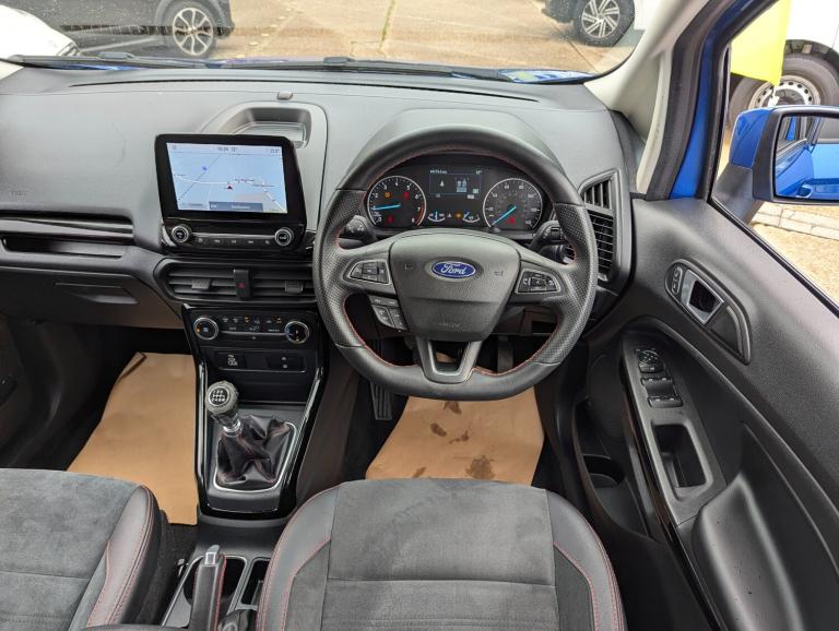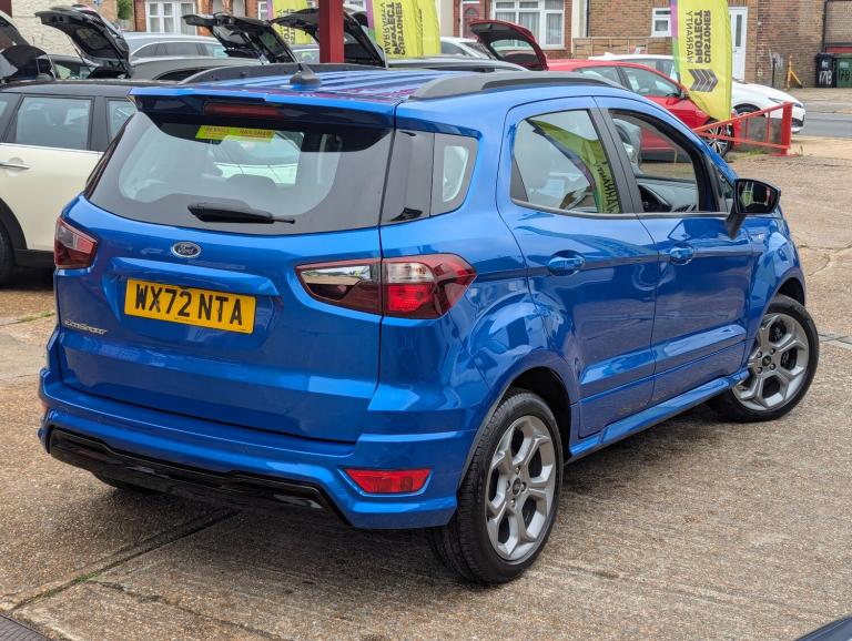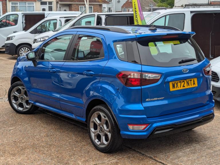 24 MONTH PARTS & LABOUR PEACE OF MIND NATIONAL WARRANTY INCLUDED IN THE PRICE. Hampden Park Motoring Centre is pleased to be offering this ULEZ compliant 2022 Ford Eco sport 1.0 Eco Boost 125 ST-Line 5dr hatchback for sale, with ONLY ONE OWNER FROM NEW and 44,100 miles. This car comes with FULL-SERVICE HISTORY. The car will leave with an interim service, new MOT and a PDI. Finished in metallic Desert Island Blue with charcoal Alcantara sports trim which adds a touch of sophistication. **WHY BUY FROM US** **Established In 1980** **24 Month Warranty On All Cars Over £4500, & Those Not Covered By A Manufactures Warranty** ** All Our Cars Are Hpi Clear So You Can Buy With Confidence** **Competitive Finance Rates Subject To Status** **Multi Branches** **Open 7 Days a Week Inc Bank Holidays** **Monday - Friday - 8.30am to 6pm** **Saturday - 9.00am to 5pm** **Sunday - 10am to 4pm** **Bank holidays 10am to 4pm** For more pictures and a walk around video please go to [Website URL removed] Please call to arrange viewing and a test drive on 01323 507307. Here at Hampden Park Motoring Centre, we have up to 50 cars on show, also at our Hailsham branch we have up to 50 further cars available for viewing, please call 01323 449900 for more info. For more information on our Eco sport please see the benefits below as stated Features Include: , cruise control, e-call (emergency call), easy fuel capless refuelling system, ford sync 3 nav system with dab radio,8'' screen, emergency assistance,apple car play/android auto, 2x usb, 6 speakers, ford pass connect, intelligent speed limiter, pas, rear parking sensors, rear view camera, traffic sign recognition, trip computer, sports suspension, steering wheel mounted audio controls, auto dimming rear view mirror, automatic front wipers, automatic headlights, black roof rails, body colour door handles, body coloured bumpers, chrome lower window surround, electrically adjustable and heated door mirrors, front fog lights, front grille bars and surround in black, headlight levelling control, large rear roof spoiler, led day running lights, led third brake light, power front and rear windows, puddle lights, quick-clear heated windscreen, rear side wing doors, rear wiper, st line body styling kit - black headlamp bezel, front and rear sport bumpers, body colour lower door claddings, 12v socket in front and rear, 3 seat bench in 2nd row, 60/40 split rear seats, ambient lighting,
