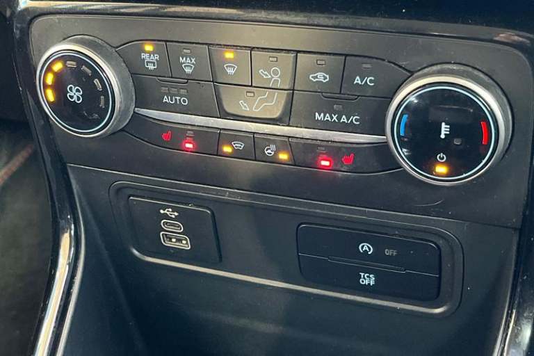 Cruise control, e-Call (emergency call), Easy fuel capless refuelling system, Ford SYNC 3 nav system with DAB radio, 8 screen, emergency assistance, Apple car play/Android auto, 2x USB, 6 speakers, Ford pass connect, Intelligent speed limiter, PAS, Rear parking sensors, Rear view camera, Traffic sign recognition, Trip computer, Auto dimming rear view mirror, Automatic front wipers, Automatic headlights, Black roof rails, Body colour door handles, Body coloured bumpers, Chrome lower window surround, Electrically adjustable and heated door mirrors, Front fog lights, Front grille bars and surround in black, Headlight levelling control, Large rear roof spoiler, LED day running lights, LED third brake light, Power front and rear windows, Puddle lights, Quick-clear heated windscreen, Rear side wing doors, Rear wiper, ST Line body styling kit - Black headlamp bezel, front and rear sport bumpers, body colour lower door claddings, 12V socket in front and rear, 3 seat bench in 2nd row, 60/40 split rear seats, Ambient lighting, Centre console with sliding front armrest, Cooled glovebox, Courtesy lights with map reading light, Driver seat height/lumbar adjust, Driver's side glovebox, Driver/passenger sunvisors and lidded vanity mirrors, EATC - Electronic Auto Temperature control, Folding grab handles, Front head restraints, Front seat back map pockets, Illuminated glovebox, Illuminated luggage compartment, Isofix system on outer rear seats, Luggage compartment carpet, Neosuede/Partial