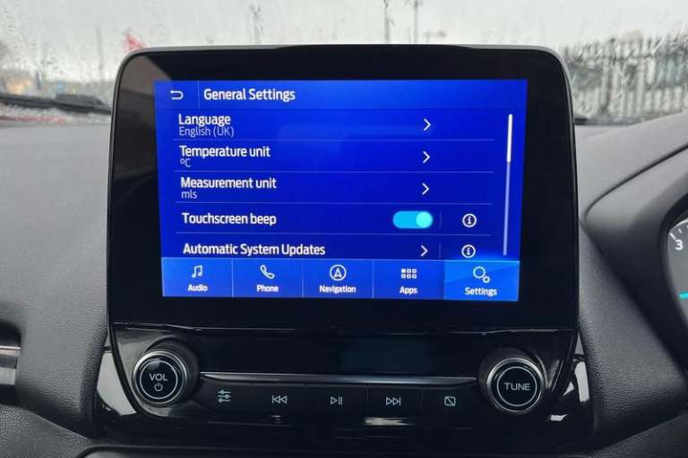 Cruise control, e-Call (emergency call), Easy fuel capless refuelling system, Ford SYNC 3 nav system with DAB radio, 8 screen, emergency assistance, Apple car play/Android auto, 2x USB, 6 speakers, Ford pass connect, Intelligent speed limiter, PAS, Rear parking sensors, Rear view camera, Traffic sign recognition, Trip computer, Auto dimming rear view mirror, Automatic front wipers, Automatic headlights, Black roof rails, Body colour door handles, Body coloured bumpers, Chrome lower window surround, Electrically adjustable and heated door mirrors, Front fog lights, Front grille bars and surround in black, Headlight levelling control, Large rear roof spoiler, LED day running lights, LED third brake light, Power front and rear windows, Puddle lights, Quick-clear heated windscreen, Rear side wing doors, Rear wiper, ST Line body styling kit - Black headlamp bezel, front and rear sport bumpers, body colour lower door claddings, 12V socket in front and rear, 3 seat bench in 2nd row, 60/40 split rear seats, Ambient lighting, Centre console with sliding front armrest, Cooled glovebox, Courtesy lights with map reading light, Driver seat height/lumbar adjust, Driver's side glovebox, Driver/passenger sunvisors and lidded vanity mirrors, EATC - Electronic Auto Temperature control, Folding grab handles, Front head restraints, Front seat back map pockets, Illuminated glovebox, Illuminated luggage compartment, Isofix system on outer rear seats, Luggage compartment carpet, Neosuede/Partial