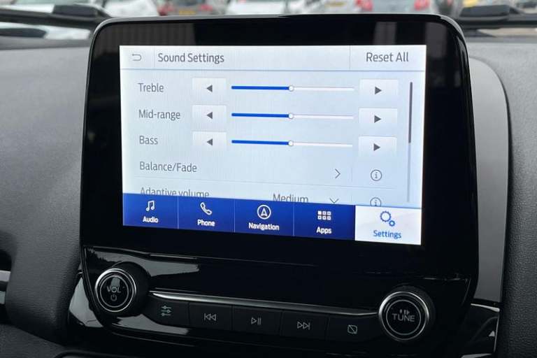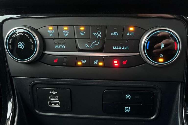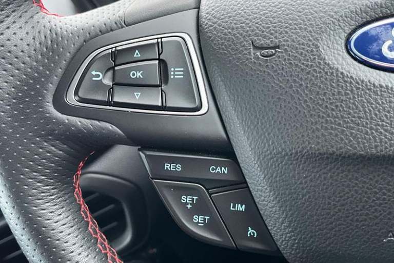 Cruise control, e-Call (emergency call), Easy fuel capless refuelling system, Ford SYNC 3 nav system with DAB radio, 8 screen, emergency assistance, Apple car play/Android auto, 2x USB, 6 speakers, Ford pass connect, Intelligent speed limiter, PAS, Rear parking sensors, Rear view camera, Traffic sign recognition, Trip computer, Auto dimming rear view mirror, Automatic front wipers, Automatic headlights, Black roof rails, Body colour door handles, Body coloured bumpers, Chrome lower window surround, Electrically adjustable and heated door mirrors, Front fog lights, Front grille bars and surround in black, Headlight levelling control, Large rear roof spoiler, LED day running lights, LED third brake light, Power front and rear windows, Puddle lights, Quick-clear heated windscreen, Rear side wing doors, Rear wiper, ST Line body styling kit - Black headlamp bezel, front and rear sport bumpers, body colour lower door claddings, 12V socket in front and rear, 3 seat bench in 2nd row, 60/40 split rear seats, Ambient lighting, Centre console with sliding front armrest, Cooled glovebox, Courtesy lights with map reading light, Driver seat height/lumbar adjust, Driver's side glovebox, Driver/passenger sunvisors and lidded vanity mirrors, EATC - Electronic Auto Temperature control, Folding grab handles, Front head restraints, Front seat back map pockets, Illuminated glovebox, Illuminated luggage compartment, Isofix system on outer rear seats, Luggage compartment carpet, Neosuede/Partial