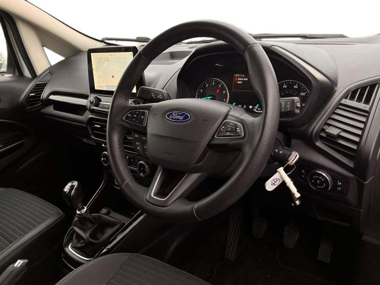 Discover this exceptional 2022 Ford EcoSport T Titanium, boasting an incredibly low mileage of just 14003 miles, a true testament to its careful ownership. This Euro 6 compliant model is powered by an efficient 1.0L petrol engine and comes with a full dealership service history, ensuring its mechanical well being. For your peace of mind, the MOT is valid until November 2026. This particular EcoSport is equipped with automatic headlights, which conveniently switch on when needed, SYNC 3 Sat Nav, rear view camera and rear parking sensors to assist you with manoeuvring into tight spaces. This Ford EcoSport stands out with its impressive fuel economy, achieving a highlight of 46 miles per gallon, which indicates it is more economical than many similar vehicles. Furthermore, its low CO2 emissions contribute to a more environmentally friendly drive. The combination of its low mileage, comprehensive service history, and desirable features makes this 2022 EcoSport T Titanium a compelling choice for those seeking a well maintained and efficient comp
