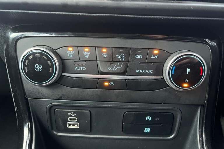 Cruise control, e-Call (emergency call), Easy fuel capless refuelling system, Ford SYNC 3 nav system with DAB radio, 8 screen, emergency assistance, Apple car play/Android auto, 2x USB, 6 speakers, Ford pass connect, Intelligent speed limiter, PAS, Rear parking sensors, Rear view camera, Traffic sign recognition, Trip computer, Auto dimming rear view mirror, Automatic front wipers, Automatic headlights, Black roof rails, Body colour door handles, Body coloured bumpers, Chrome lower window surround, Electrically adjustable and heated door mirrors, Front fog lights, Front grille bars and surround in black, Headlight levelling control, Large rear roof spoiler, LED day running lights, LED third brake light, Power front and rear windows, Puddle lights, Quick-clear heated windscreen, Rear side wing doors, Rear wiper, ST Line body styling kit - Black headlamp bezel, front and rear sport bumpers, body colour lower door claddings, 12V socket in front and rear, 3 seat bench in 2nd row, 60/40 split rear seats, Ambient lighting, Centre console with sliding front armrest, Cooled glovebox, Courtesy lights with map reading light, Driver seat height/lumbar adjust, Driver's side glovebox, Driver/passenger sunvisors and lidded vanity mirrors, EATC - Electronic Auto Temperature control, Folding grab handles, Front head restraints, Front seat back map pockets, Illuminated glovebox, Illuminated luggage compartment, Isofix system on outer rear seats, Luggage compartment carpet, Neosuede/Partial
