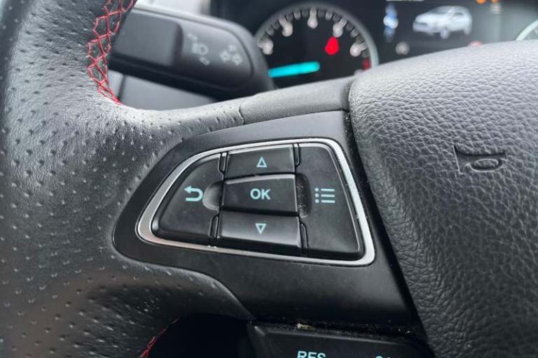 Cruise control, e-Call (emergency call), Easy fuel capless refuelling system, Ford SYNC 3 nav system with DAB radio, 8 screen, emergency assistance, Apple car play/Android auto, 2x USB, 6 speakers, Ford pass connect, Intelligent speed limiter, PAS, Rear parking sensors, Rear view camera, Traffic sign recognition, Trip computer, Auto dimming rear view mirror, Automatic front wipers, Automatic headlights, Black roof rails, Body colour door handles, Body coloured bumpers, Chrome lower window surround, Electrically adjustable and heated door mirrors, Front fog lights, Front grille bars and surround in black, Headlight levelling control, Large rear roof spoiler, LED day running lights, LED third brake light, Power front and rear windows, Puddle lights, Quick-clear heated windscreen, Rear side wing doors, Rear wiper, ST Line body styling kit - Black headlamp bezel, front and rear sport bumpers, body colour lower door claddings, 12V socket in front and rear, 3 seat bench in 2nd row, 60/40 split rear seats, Ambient lighting, Centre console with sliding front armrest, Cooled glovebox, Courtesy lights with map reading light, Driver seat height/lumbar adjust, Driver's side glovebox, Driver/passenger sunvisors and lidded vanity mirrors, EATC - Electronic Auto Temperature control, Folding grab handles, Front head restraints, Front seat back map pockets, Illuminated glovebox, Illuminated luggage compartment, Isofix system on outer rear seats, Luggage compartment carpet, Neosuede/Partial