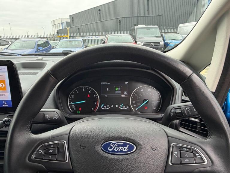 This 2022 Ford EcoSport T Active is a superb example, having had only one owner since new. This stylish SUV is equipped with a responsive 1.0L petrol engine and meets Euro 6 emission standards. Inside, you'll find the convenient Ford SYNC 3 Navigation system featuring an 8in touchscreen, compatible with both Android Auto and Apple CarPlay. Comfort is assured with Electronic Automatic Temperature Control air conditioning, while the automatic headlights, including LED low beam, and rear parking sensors provide added ease and safety.The EcoSport T Active stands out with its impressive fuel economy, achieving a highlight of 46 miles per gallon, and also boasts low CO2 emissions. These figures suggest that this vehicle offers a more economical and environmentally conscious driving experience compared to many other vehicles in its class, making it a sensible choice for your next car.