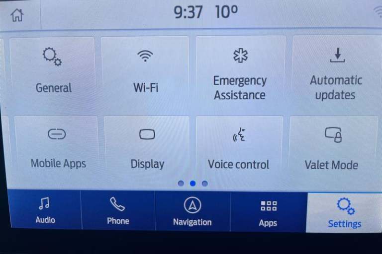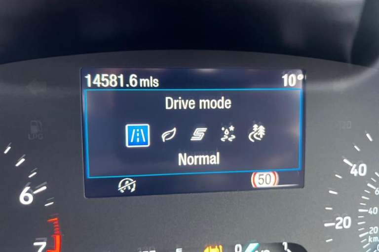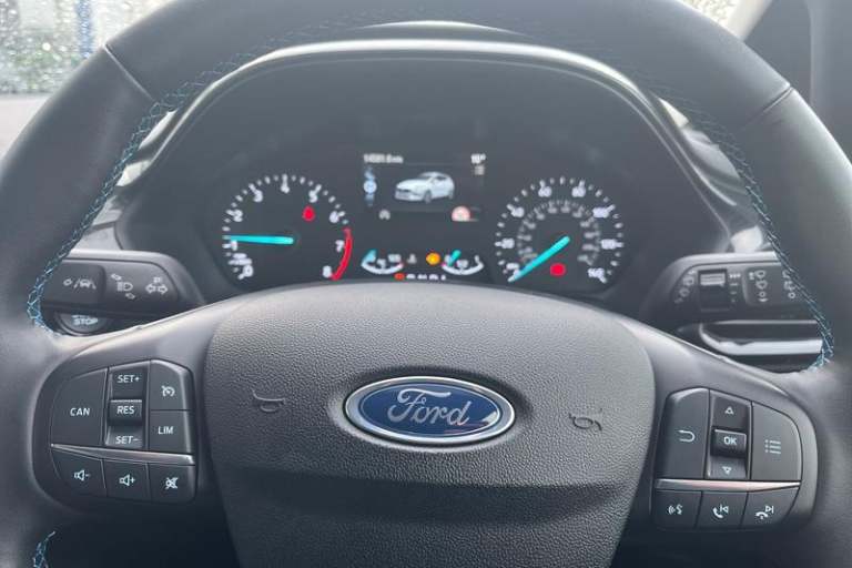 Driver alert system, Electric power steering, Ford easy fuel, Lane keep assist, Lane keeping aid, Rear parking distance sensors, Rear view camera, Selectable drive modes (Normal, Sport, Track), Trip computer, 3rd brake light, Auto high beam, Automatic headlights, Body colour bumpers, Body coloured electrically operated with side indicators, Electric front windows/one touch facility, Electric rear windows, LED rear lights, Quickclear heated windscreen, Rain sensing wipers and auto dimming rear view mirror, Rear privacy glass, Rear side wing doors, Rear wiper, Rugged bodystyling kit with active front wing badges, 3 rear headrests, 3 seat bench in 2nd row, 4 way manually adjustable passenger seat, Adjustable head restraints, Centre console with opening armrest, 2x cupholders, 12v and USB, EATC - Electronic Auto Temperature control, Leather gear knob, Manual 4-way driver seat adjust, Premium floor mats, Sensico partial premium leather upholstery with blue stitching, Sensico wrapped steering wheel, Single front passenger seat, 3 point seatbelts on all rear seats, Electronic stability control with hill start assist, Front and rear seat belt warning, Manual child lock in rear doors, Tyre pressure monitoring system