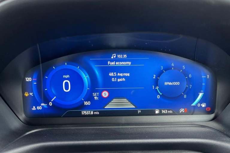 4.2 TFT instrument cluster screen, Bluetooth system, Electric power steering, Extra selectable drive modes ( Trail, Slippery), Ford easy fuel, Rear parking distance sensors, Selectable drive modes (Normal, Sport, Track), Traffic sign recognition, Trip computer, Auto high beam, Body colour bumpers, Body colour door handles, Body colour rear spoiler, Chrome beltline trim, Cornering front fog lights, Electric front windows/one touch facility, Electric rear windows, LED Night signature to rear lights, Mesh design front grille with chrome surround, Power foldable door mirrors with puddle lights, Quickclear heated windscreen, Rain sensing wipers and auto dimming rear view mirror, Rear privacy glass, Rear wiper, Rugged body styling kit with active front wing badges, 3 spoke leather trimmed steering wheel with audio control, 60/40 split folding rear seat, Adjustable head restraints, Boot carpet, Centre console with opening armrest, 2x cupholders, 12v and USB, Chrome inner door handles, Drivers and Passenger lumbar support, EATC - Electronic Auto Temperature control, Footwell illumination, Front floor mats in velour, Front map reading lights, Front seat and rear pockets, Height adjustable passenger seat, Illuminated glovebox, Leather gaiter, LED ambient lighting, Load area light, Manual 4-way driver seat adjust, Overhead console with sunglasses holder, Pollen filter, Rake/reach adjustable steering wheel, Sensico partial premium upholstery, Sensico wrapped steering wheel, 3 point