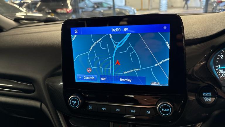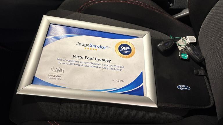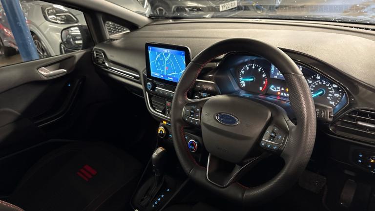 The Ford Fiesta Hatchback 1.0 EcoBoost Hybrid mHEV 125 ST&8209,Line 5dr Auto blends sporty styling with modern mild&8209,hybrid efficiency. Its 1.0&8209,litre EcoBoost petrol engine produces 125 bhp, delivering a lively drive with smooth power delivery enhanced by a 48&8209,volt mild&8209,hybrid system. This system uses a belt&8209,driven starter&8209,generator to harvest braking energy, providing additional torque at low revs for improved responsiveness and reduced turbo lag. All our vehicles at Vertu come fully prepared with our peace of mind Main Dealer guarantee. Every vehicle is fully prepared both mechanically and cosmetically up to the highest standard which even includes having any tyre replaced that has less than 3mm tread depth (legal limit is 1.6mm). Every vehicle will have a minimum of 9 months MOT remaining and you will not have to service the vehicle for at least 6 months or 6000 miles. We ensure that you will have a minimum of 2 keys and to give you even further reassurance we also supply you with a 3 months complimentary warranty and a 14-day money back guarantee. Our vehicles also come with a full HPI vehicle check assuring you that your new vehicle will have no registered accident claims reported, or any outstanding finance, it also shows the vehicle has not been imported. In addition to this we also do a full Government VOSA report check to verify the mileage on all cars over 3 years old. This service comes free of charge to all our customers unlike other main dealers who charge you an admin fee for this service. We also offer nationwide delivery on all our vehicles, so call today to arrange a viewing / test drive and let one of our professional sales executives give you the Vertu experience. Recommend booking in advance so we can ensure this vehicle is available due to our high stock turnover to avoid disappointment. We can be found on Masons Hill, Bromley..Air Conditioning, Climate Control, Satellite Navigation, Alloy Wheels, DAB Radio, Bluetooth, Parking Sensors, Stop Start, Heated Front Windscreen, Low Mileage, Full Service History, USB, Keyless Entry-Push Button Start, Apple-Android Play, Auto Lights& Rain Sensors, Premium floor mats, Quickclear heated windscreen, Electric front windows/one touch facility, Rear privacy glass, Rain sensing wipers and auto dimming rear view mirror, Rear wiper, Electric rear windows, Electronic stability control with hill start assist, Sports suspension, Electric power steering, Rear parking distance sensors, Driver alert system, Selectable drive modes (Normal, Sport, Track), Lane keep assist, Speed limiter, Lane keeping aid, Ford easy fuel, Trip computer, Wireless charging, 4.2"" Colour TFT Ice blue illumination analogue cluster, Body coloured electrically operated with side indicators, Body colour bumpers, Body colour large rear spoiler, Rear side wing doors