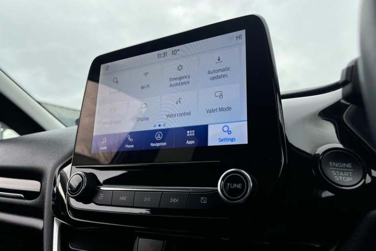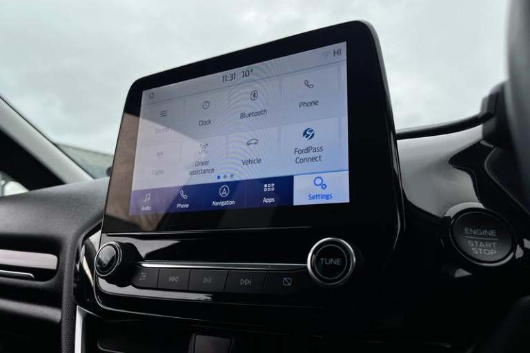 4.2 TFT instrument cluster screen, Bluetooth system, Electric power steering, Ford easy fuel, Rear parking distance sensors, Selectable drive modes (Normal, Sport, Track), Traffic sign recognition, Trip computer, Auto high beam, Body colour bumpers, Body colour door handles, Body colour rear spoiler, Body coloured electrically operated and heated door mirrors with side indicators, Chrome beltline trim, Chrome front grille, Chrome lower window surround, Cornering front fog lights, Electric front windows/one touch facility, Electric rear windows, LED Night signature to rear lights, Power foldable door mirrors with puddle lights, Quickclear heated windscreen, Rain sensing wipers and auto dimming rear view mirror, Rear privacy glass, Rear wiper, 3 spoke leather trimmed steering wheel with audio control, 60/40 split folding rear seat, Adjustable head restraints, Boot carpet, Centre console with opening armrest, 2x cupholders, 12v and USB, Chrome inner door handles, Drivers and Passenger lumbar support, EATC - Electronic Auto Temperature control, Footwell illumination, Front floor mats in velour, Front map reading lights, Front seat and rear pockets, Height adjustable passenger seat, Illuminated glovebox, Leather gaiter, LED ambient lighting, Load area light, Luxury woven headliner, Manual 4-way driver seat adjust, Overhead console with sunglasses holder, Pollen filter, Rake/reach adjustable steering wheel, Sensico partial premium upholstery, Sensico wrapped steering wheel, 3