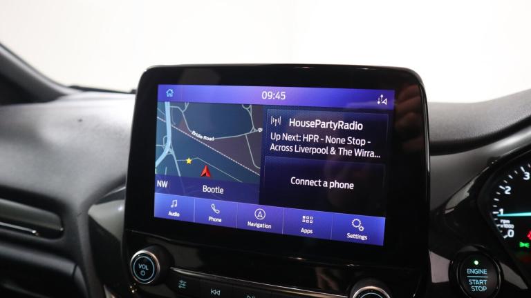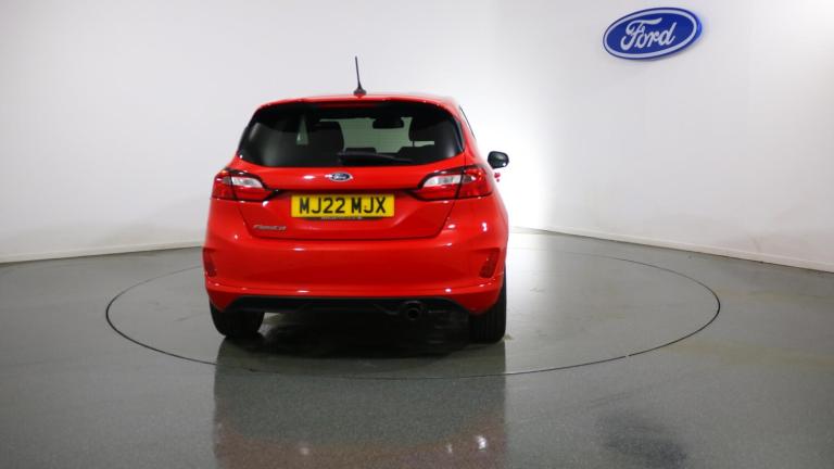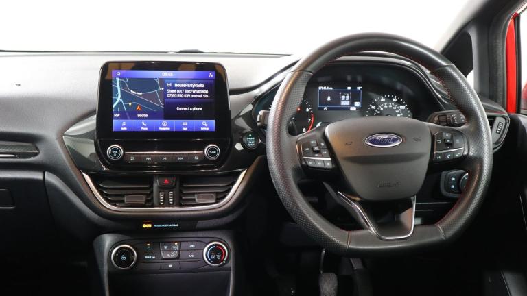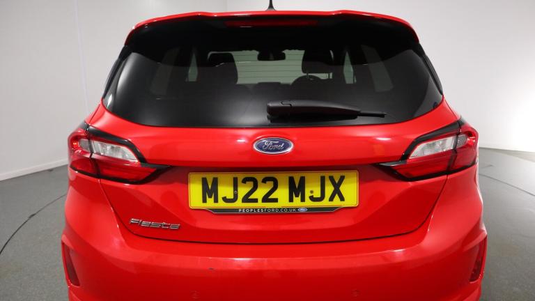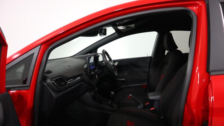 .This 2022 Ford Fiesta ST Line offers a superb blend of sporty design and efficient motoring. Powered by a responsive 1.0 litre petrol engine, this Euro 6 compliant model is registered in 2022 and presents itself in the desirable ST Line trim. Its low CO2 emissions make it an attractive choice for those mindful of their environmental impact and running costs. The Ford Fiesta ST Line stands out with its dynamic styling and engaging driving experience. The low CO2 emissions are a key highlight, indicating that this vehicle is designed for greater fuel efficiency and reduced environmental impact compared to many other cars in its class. This makes it a smart and practical option for everyday use..4.2'' Colour TFT Ice blue illumination analogue cluster, Driver alert system, Electric power steering, Ford easy fuel, Ford SYNC 3 Nav with DAB radio, 8'' touch screen, voice control, emergency assist, Apple CarPlay/Android auto, 2x USB, 6 speaker, Ford pass connect, Rear parking distance sensors, Selectable drive modes (Normal, Sport, Track), Speed sign recognition, Trip computer, Sports suspension, 3rd brake light, Auto high beam, Body colour bumpers, Body colour large rear spoiler, Body coloured electrically operated with side indicators, Electric front windows/one touch facility, Quickclear heated windscreen, Rain sensing wipers and auto dimming rear view mirror, Rear privacy glass, Rear side wing doors, Rear wiper, Red air vent inserts, Unique ST-Line upper grille & full bodystyling kit with ST-Line wing badges, 3 seat bench in 2nd row, Adjustable head restraints, Black headlining, Centre console with opening armrest, 2x cupholders, 12v and USB, Cloth upholstery with red stitching, Drivers and Passenger lumbar support, Front floor mats in velour, Leather gaiter, Manual 2 way passenger seat adjust, Manual 4-way driver seat adjust, Manual air conditioning, Sensico wrapped steering wheel, Single front passenger seat, NCAP Pack - Fiesta, 3 point seatbelts on all rear seats, Electronic stability control with hill start assist, Manual child lock in rear doors, Tyre pressure monitoring system, Keyless start with 'Ford Power' starter button, MyKey system, Remote central locking, Thatcham alarm with power door dead locks, 17'' 5x2 spoke alloy wheels with rock metallic finish