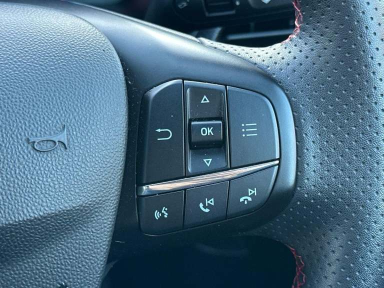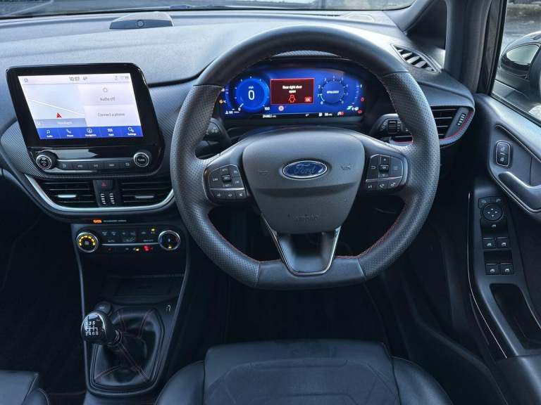This 2022 Ford Fiesta ST Line Vignale offers a refined driving experience with its advanced 1.0L Petrol Hybrid engine, ensuring both efficiency and responsive performance. As a Euro 6 compliant vehicle, it meets stringent emission standards. This particular model boasts a host of desirable features, including the impressive B&O Premium Sound System for an immersive audio experience, and SYNC 3 with Navigation, complete with Android Auto and Apple CarPlay for seamless connectivity. Convenience is further enhanced by the Ford Key Free System, allowing for keyless entry and start, and the Winter Pack, which includes heated seats and a heated steering wheel for added comfort during colder months. Automatic headlights also contribute to a more effortless drive.The performance of this Fiesta is noteworthy, achieving 0-62mph in just 9.4 seconds, demonstrating its spirited acceleration. These highlights, such as the premium sound system, advanced navigation, and convenient keyless entry, set this ST Line Vignale apart from other vehicles in its class, offering a superior combination of technology, comfort, and driving dynamics for the discerning owner.