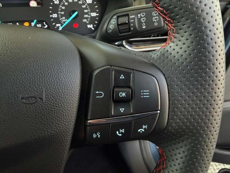 Ford SYNC2.5 without Navigation or Embedded Voice Control and Embedded Modem, 4.2in TFT Ice Blue Illumination Analogue Cluster with Trip Computer, Cruise Control includes Speed Limiter and Intelligent Speed Assistance, Parking Distance Sensors - Rear, Selectable Drive Modes, Traffic Sign Recognition, Auto High Beam and Driver Alert, Trip Computer, Tyre Pressure Monitoring System - TPMS, 17in Alloy Wheels - 5x2-Spoke - Rock Metallic, Active Grille Shutter, Chrome Exhaust Trim, Door Handles - Body Colour, Door Mirrors - Heated - Electric - Integrated Side Indicators - Body Coloured, Electric Windows - Rear, Front Bumper - Unique ST-Line, Front Upper Grille - Unique ST-Line - Body Coloured, Locking Wheel Nuts, Quickclear Heated Windscreen, Rear Bumper - Unique ST-Line, Rear Privacy Glass, ST-Line Badge, Tailgate Handle - Body Colour, Tyre Repair Kit, Unique ST-Line Grille - Full Bodystyling Kit, and Large Body Coloured Rear Spoiler, Windows - Electrically-Operated Front with One-Touch Lowering-Closing on Drivers Side, LED Headlights with Daytime Running Lights and Integrated Fog Lights, Rear Lights - Non-LED - Splite, Air Conditioning - Manual, Auto Dimming Rear View Mirror, Black Interior Headlining, Cargo Area Cover, Centre Console - Premium with Openable Stowage Area with USB Connectivity - 2 Cupholders and 12v Power Point, Courtesy Light - Front LED with Map-reading Light, Door Lever - Chrome Finish, Floor Mats - Front Deluxe Carpet, Front Seat - Driver 4-Way Manual Adjust,