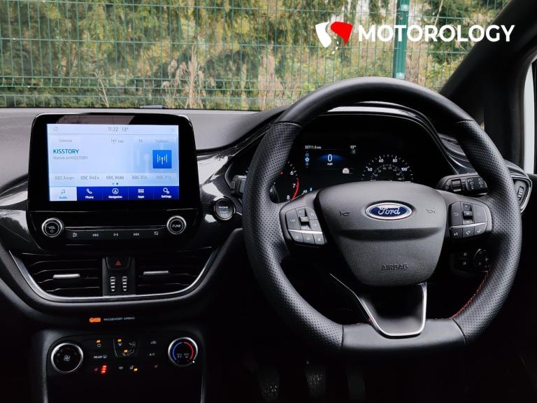 (BP72 LUF) 1 Lady Owner From New, Service History, ULEZ Compliant, Supplied With 2 Keys, Rear Parking Sensors, Cruise Control, Drive Mode Select, Start/Stop, Lane Assist, Keyless Start, Heated Front Seats, Auto Xenon Headlights, Apple CarPlay, Android Auto, Touchscreen Navigation, Heated Multi - Functional Steering Wheel, Bluetooth Phone Preparation, DAB Radio, Voice Command, USB Port, Isofix, Electric Mirrors, Electric Windows, Privacy Glass, 17” Alloys. Explore [Website URL removed] or call 0151 382 2350 for the chance to drive away or receive same-day vehicle delivery. FINANCE available for all vehicles, ensuring accessibility for every customer. Count on us to secure the right finance solution tailored to your needs. We offer NATIONWIDE DELIVERY, and our vehicles undergo rigorous inspections for top-notch quality. Enjoy a COMPLIMENTARY HPI CHECK for added peace of mind. We're open 7 days, with evening appointments and 24/7 contact lines available. Experience our seamless car shopping with PERSONALISED VIDEOS and a £100 FULLY REFUNDABLE DEPOSIT to reserve your vehicle. Choose from an array of options, including EXTENDED WARRANTIES with thousands of approved garages. Your convenient and rewarding car-buying journey starts here. PART-EXCHANGED are welcomed for all cars! We are very proud to offer this 2022 Ford Fiesta 1.0T EcoBoost ST-Line, a standout choice for those seeking a blend of performance and practicality in a stylish hatchback package. This vehicle boasts a spirited 1.0-litre engine that delivers 99 bhp and 125 lbs/ft of torque, ensuring a lively drive with a top speed of 112 mph and an acceleration from 0 to 60 mph in just 10.8 seconds. Despite its punchy performance, it remains economical at the pumps, with a fuel consumption rate of 51.4 mpg, making it an ideal companion for both city commutes and longer journeys. The manual transmission paired with front-wheel drive offers precise control and an engaging driving experience. With seating for five and five doors, this hatchback combines convenience and comfort, making it perfect for families or anyone needing a bit more space. The car's sleek Frozen White finish and a well-maintained interior with no previous owners highlight its premium appeal and readiness for the road. The SYNC 3 with Navigation system enhances your driving experience by providing easy-to-use and responsive voice-activated technology. This advanced system not only helps with directions but also keeps yo...