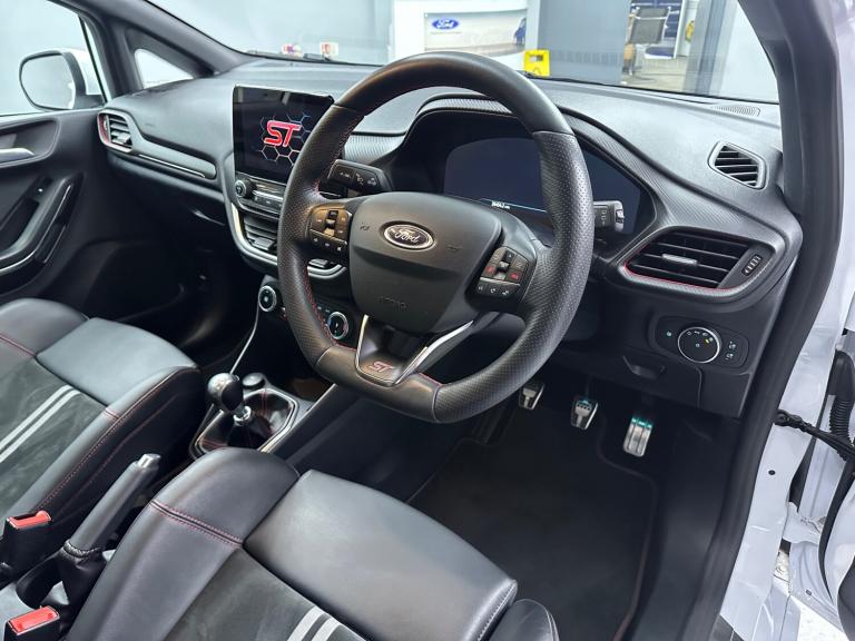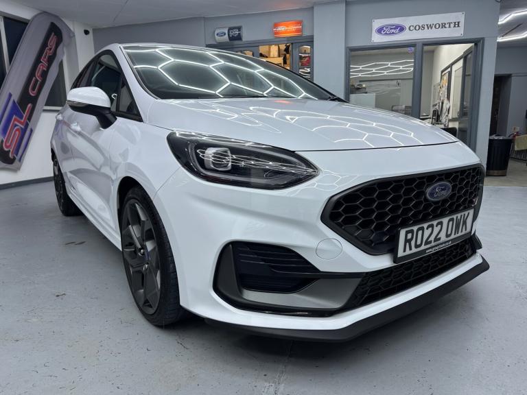 Welcome to SL CARS based in Warminster Wiltshire!Here at SL CARS we are pleased to present This 2022 Ford Fiesta ST-3 finished in Ford's Frozen White and complimented by the Magnetite Alloy Wheels.This Fiesta ST3 boasts a full service history and a clear vehicle history check, offering excellent provenance. Under the bonnet, you'll find a lively 200bhp 1.5L Petrol Turbocharged Engine, compliant with Euro 6 emissions standards as well as achieving over 40mpg on the slower journeys.This ST-3 model comes equipped with desirable features such as a Rear View Camera with parking assistance, a Full Winter Pack including heated seats and steering wheel, rear parking distance sensors, and the convenient Ford Key Free System for keyless entry and start. Comfort is further enhanced by the Electronic Automatic Temperature Control air conditioning.Light up the road ahead with the LED headlights, the LED headlights makes this Fiesta ST3 a outstanding, safe and comfortable vehicle to use during during the nights Experience exhilarating performance with this Fiesta, capable of accelerating from 0-62mph in just 6.5 seconds. This impressive acceleration highlights how this vehicle offers a more dynamic driving experience compared to many others in its class. The inclusion of the Winter Pack ensures comfort during colder months, while the parking assistance features make manoeuvring in tight spaces straightforward. With a 3 month warranty included, this Ford Fiesta ST-3 is ready for its next adventure.