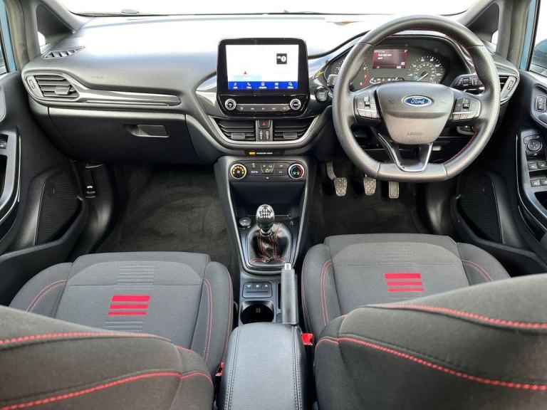 This advert is for a Ford Fiesta ST-Line 5 Dr 1.0L 100PS 6 Speed in Chrome Blue