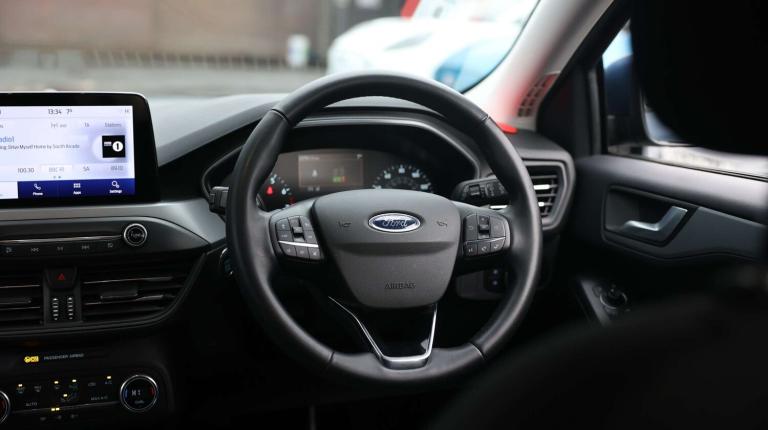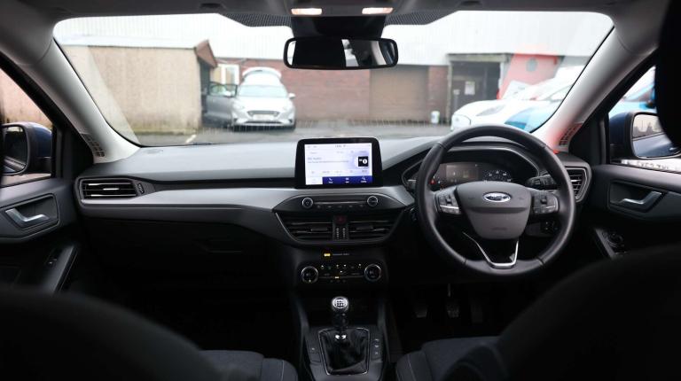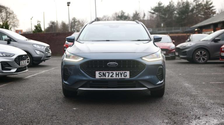.The Ford Focus 1.0 EcoBoost Active Style is a compact hatchback that delivers a perfect balance of style, efficiency, and practicality. Its 1.0-litre EcoBoost engine offers responsive performance while remaining economical, ideal for both city streets and longer journeys. The exterior showcases a rugged body styling kit with active front wing badges, full LED headlamps, LED daytime running lights, LED rear lamps, polished twin tailpipes, and privacy glass, giving it a contemporary and confident look. Quickclear heated windscreen, rain-sensing wipers, and electrically operated heated power-folding door mirrors with puddle lamps add convenience in any weather. Inside, the cabin is driver-focused yet practical. Dual-zone electronic climate control ensures comfort for all passengers, while cloth upholstery and height-adjustable front headrests provide everyday usability. The 4.2'' colour TFT instrument cluster with Ice Blue illumination keeps essential information visible at a glance. The single front passenger seat, 3 rear headrests, 3x3 point rear seatbelts, and Isofix child seat preparation make it family-friendly. Technology and connectivity include Bluetooth, digital clock, selectable drive modes, and an electronic parking brake with auto hold function, making every drive smooth and controlled. Safety is comprehensive: pre-collision assist with autonomous emergency braking and pedestrian/cyclist detection, lane keeping system, post-collision braking, ABS with EBD, electronic stability control, side curtain airbags, MyKey system, keyless entry/start, and a Thatcham-approved alarm. This Active Style Focus combines sporty looks, modern tech, and everyday practicality into one efficient, stylish hatchback..4.2'' Colour TFT Ice blue illumination analogue cluster with trip computer, Bluetooth system, Digital clock, Easy fuel capless refuelling system, eCall emergency call system, Eco mode, Lane keeping system - lane keeping alert and lane keeping aid, PAS, Rev counter, Selectable drive mode, Service interval indicator, Rough road suspension with increased ride height, Auto headlamps (on/off), Body coloured door handles, Electrically operated front and rear windows with one touch opening and closing, Electrically operated heated power fold door mirrors with puddle lamp with side indicators, Front variable intermittent wipers with electric wash, Full fixed LED headlamps, Heated rear window, LED daytime running lamp, LED rear lamps, LED third brake light,