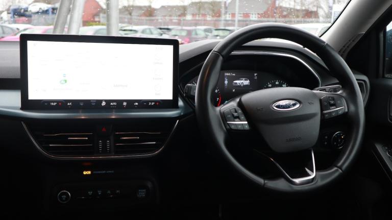 .This 2022 Ford Focus T Active boasts exceptionally low mileage for its age, having covered just 24945 miles. As a Euro 6 compliant model, it features a responsive 1.0 litre petrol engine, offering a blend of efficiency and performance. The Active trim level enhances its appeal, providing a stylish and practical option for everyday driving. With an impressive fuel economy of 52 miles per gallon, this Focus T Active is designed to be economical on your journeys. Its acceleration from 0 to 62 miles per hour in 10.2 seconds demonstrates its capability, while the large boot space ensures you have ample room for luggage or shopping. These highlights indicate that this vehicle offers a superior experience compared to many others in its class..4.2'' Colour TFT Ice blue illumination analogue cluster with trip computer, Bluetooth system, Digital clock, Easy fuel capless refuelling system, eCall emergency call system, Eco mode, Lane keeping system - lane keeping alert and lane keeping aid, PAS, Rev counter, Selectable drive mode, Service interval indicator, Rough road suspension with increased ride height, Auto headlamps (on/off), Body coloured door handles, Electrically operated front and rear windows with one touch opening and closing, Electrically operated heated power fold door mirrors with puddle lamp with side indicators, Front variable intermittent wipers with electric wash, Full fixed LED headlamps, Heated rear window, LED daytime running lamp, LED rear lamps, LED third brake light, Polished twin tailpipe, Privacy glass, Quickclear heated windscreen, Rain sensor, Rear side wing doors, Rugged body styling kit with active front wing badges, Tailgate wash/wipe, 3 rear headrests, 3 seat bench in 2nd row, Cloth upholstery, Dual zone electronic air temperature control, Height adjustable front headrests, Isofix child seat preparation, Manual 4-way passenger seat adjusts, Reach + rake adjustable steering column, Single front passenger seat, 3x3 point rear seatbelts, ABS+Electronic Brake force Distribution, Auto hold function, Driver airbag, EDL traction control, Electronic parking brake, Electronic stability control, Front and rear seatbelt reminder, Front inertia reel height adjustable seatbelts with pre-tensioners, Front passenger airbag, Front side airbags, Passenger airbag deactivate switch, Post collision braking, Pre collision assist with autonomous emergency braking and pedestrian/cyclist detection, Remote/power child rear door locks, Side curtain airbags,