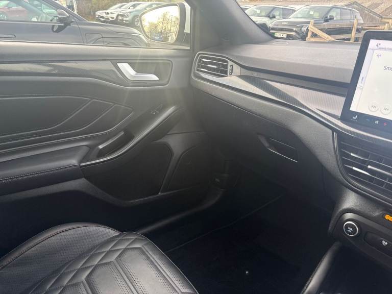This 2022 Ford Focus ST Line VignaleT powered by an efficient 1.0 litre petrol hybrid engine and meets the Euro 6 emission standards. Experience the refined driving experience of the Focus ST Line Vignale, a model that stands out with its premium trim level. Its hybrid technology ensures a balance of performance and economy, making it a smart choice for your daily journeys. The combination of its modern design and advanced powertrain makes this Ford Focus a compelling option.