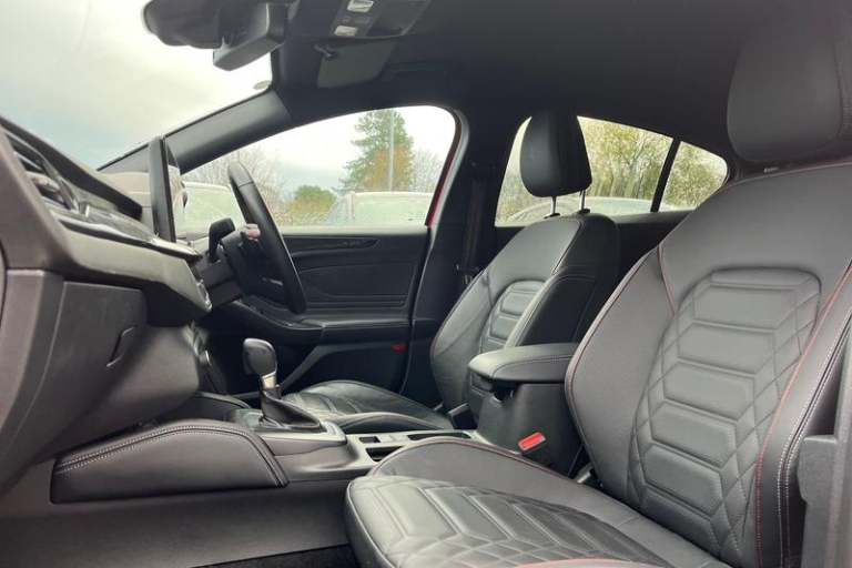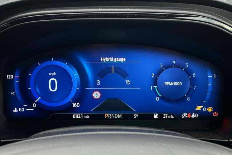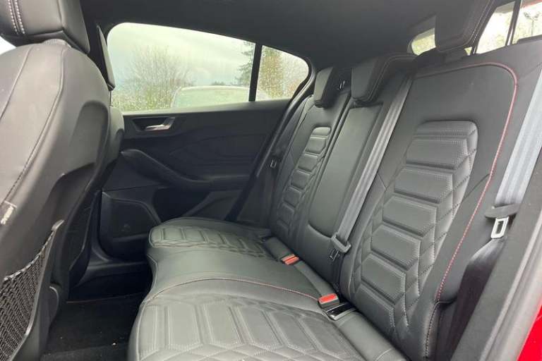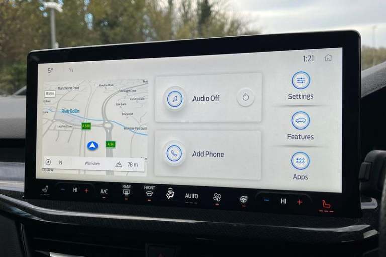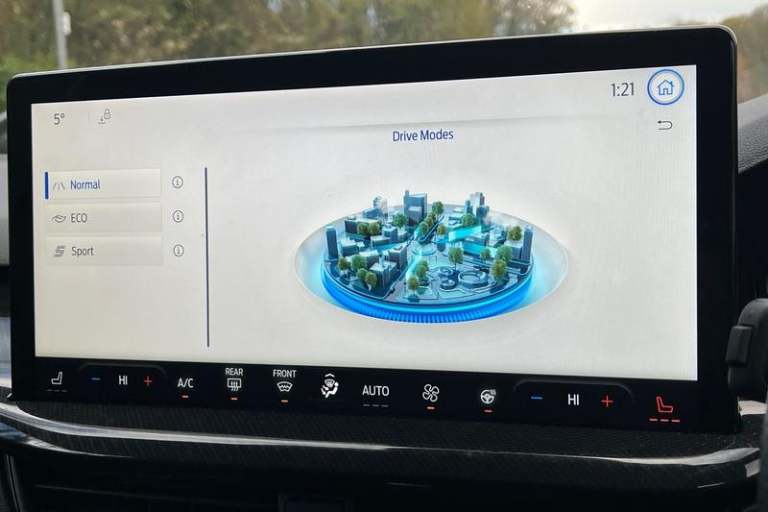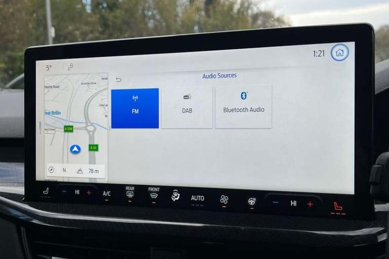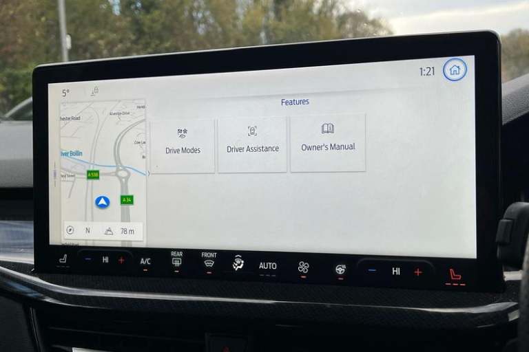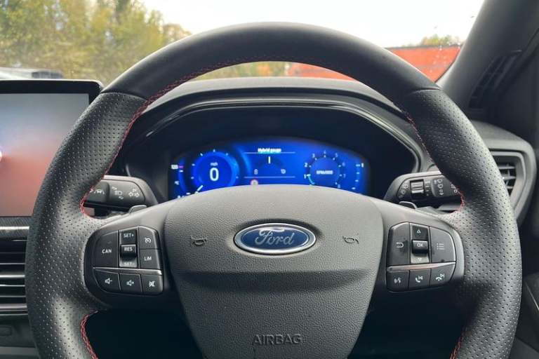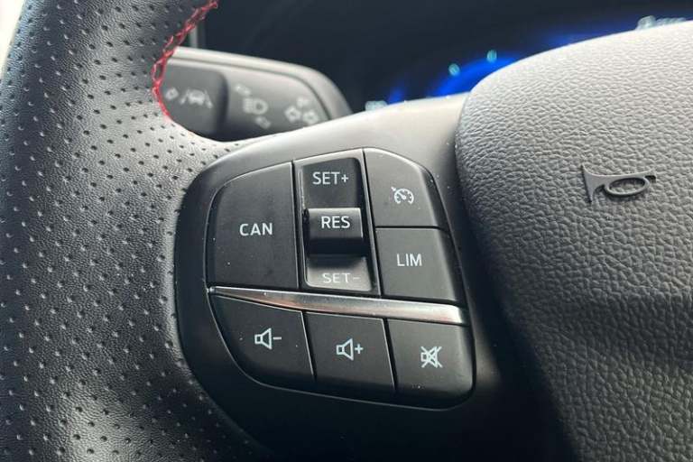12.3 Digital instrument cluster, Bluetooth system, Digital clock, Easy fuel capless refuelling system, Eco mode, Ford SYNC4 Nav with 13.2'' touchscreen, DAB, Emergency Assistance, Apple Carplay & Android Auto, B&O Premium Audio with 10 speakers, FordPass Connect, Lane keeping system - lane keeping alert and lane keeping aid, PAS, Rev counter, Selectable drive mode, Service interval indicator, Trip computer, Wireless charging pad, Auto headlamps (on/off), Body coloured door handles, Electrically operated front and rear windows with one touch opening and closing, Electrically operated heated power fold door mirrors with puddle lamp with side indicators, Front variable intermittent wipers with electric wash, Heated rear window, LED daytime running lamp, LED rear lamps, LED third brake light, Polished twin tailpipe, Privacy glass, Quickclear heated windscreen, Rain sensor, Rear side wing doors, Tailgate wash/wipe, Unique ST-Line grille, full bodystyling kit, and large body coloured rear spoiler, 3 rear headrests, 3 seat bench in 2nd row, Dual zone electronic air temperature control, Full sensico premium upholstery, Height adjustable front headrests, Isofix child seat preparation, Load through ski hatch, Manual 2-way passenger seat adjust, Power 4-way driver seat adjust, with power lumbar adjust, Reach + rake adjustable steering column, Single front passenger seat, 3x3 point rear seatbelts, ABS+Electronic Brake force Distribution, Auto hold function, Driver airbag, EDL traction