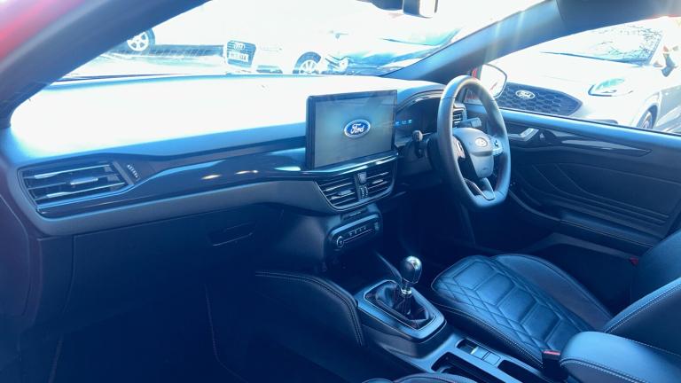 If you are searching for a hatchback that combines sharp design, engaging performance and impressive efficiency, this Ford Focus Hatchback 1.0 EcoBoost 155 ST-Line Vignale 5dr in Race Red deserves your full attention. It captures everything that has made the Focus a benchmark in its class, wrapped in a thoroughly modern and sporty package.The ST-Line Edition styling gives this Focus a dynamic edge that is instantly appealing. Sculpted body lines, a confident stance and subtle performance-inspired detailing create a car that looks poised and purposeful from every angle. Finished in Magnetic Grey Metallic, it exudes understated confidence, highlighting the Focus’s sleek proportions and premium feel.At its heart lies Ford’s award-winning 1.0 EcoBoost petrol engine, producing a lively 125PS while remaining remarkably economical. It delivers smooth, eager acceleration and excellent real-world efficiency, making it ideal for daily commuting as well as longer journeys. The Focus’s renowned chassis balance ensures every drive feels composed and enjoyable, proving that efficiency and driving pleasure can go hand in hand.Inside, the cabin is modern, comfortable and designed with the driver firmly in mind. Built-in satellite navigation makes light work of unfamiliar routes, while Apple CarPlay seamlessly integrates your smartphone, keeping your music, calls and apps easily accessible. Cruise control adds extra comfort on motorway journeys, helping you relax and enjoy the ride. Everything feels intuitive, well laid out and finished to a high standard.Buying from Vertu Ford Stafford brings complete peace of mind. Each vehicle is thoroughly inspected and prepared by Ford trained technicians who know these cars inside out. You will also benefit from friendly, knowledgeable staff and excellent aftersales support long after you drive away.Stylish, efficient and genuinely rewarding to drive, this Ford Focus ST-Line Edition is a standout choice in the hatchback market. Book your test drive today and rediscover why the Focus remains one of the most celebrated.Air Conditioning, Climate Control, Cruise Control, Satellite Navigation, Alloy Wheels, Leather Seats, Heated Seats, DAB Radio, Bluetooth, Parking Sensors, Stop Start, Heated Front Windscreen, USB, Diamond Cut Alloy Wheels, Keyless Entry-Push Button Start, Apple-Android Play, Auto Lights, Electric Folding Mirrors, Lane Keeping Assist, Pre Crash Prevention& Rain Sensors, Quickclear heated windscreen, Tailgate wash/wipe, Heated rear window, Privacy glass, Front variable intermittent wipers with electric wash, Electrically operated front and rear windows with one touch opening and closing, Rain sensor, ABS+Electronic Brake force Distribution, Electronic stability control, Electronic parking brake, Red brake calipers, Auto hold function, Post collision braking, EDL traction control, Sports tuned suspension, Bluetooth system, PAS, Eco mode, Selectable drive mode, Pre collision assist with autonomous emergency braking and pedestrian/cyclist detection