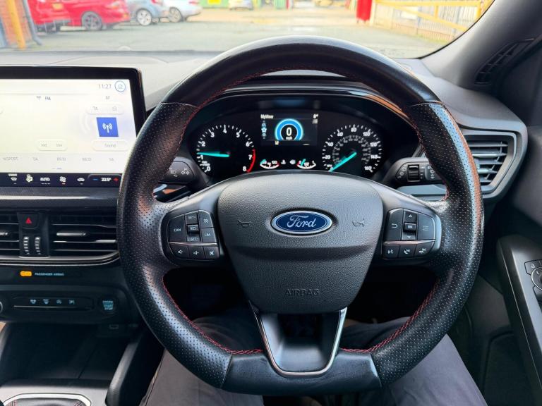 XXX NICE SPEC XXX 9.9% FINANCE AVAILABLE XXX STUNNING CONDITION INSIDE & OUT, DRIVES PERFECT, ONLY 1 OWNER FROM NEW WITH A FULL FORD MAIN DEALER SERVICE HISTORY. MOT UNTIL THE 14/10/2026, 90 DAY WARRANTY INCLUDED, GENUINE MILEAGE, HPI CLEAR, 2 KEYS & BOOK PACK, REALLY IS A NICE CAR YOU WILL NOT BE DISAPPOINTED, ANY INSPECTION/TEST DRIVE WELCOME,ALL MAJOR DEBIT AND CREDIT CARDS ACCEPTED,GREAT PRICES ON YOUR PART EXCHANGE, TO VIEW MORE CAR'S AND SEE OUR OPENING TIMES VISIT OUR WEBSITE WWW.FORMBYCARCENTRE.CO.UK , WE CAN ALSO DO A WALK AROUND VIDEO OF THE CAR VIA WHATSAPP MESSENGER, HOME DELIVERY CAN ALSO BE ARRANGED, CAR FINANCE CALCULATOR ON OUR WEBSITE ADJUST YOUR DEPOSIT/TERM, YOU CAN ALSO APPLY FOR FINANCE ON OUR WEBSITE 24/7 FOR AN INSTANT DECISION, ''Terms and Conditions applyThis 2022 Ford Focus ST ST Line is presented in excellent condition with a full dealership service history and a clear vehicle history check, having had only one owner from new. This stylish hatchback is equipped with a responsive 1.0L petrol engine, meeting Euro 6 emissions standards. Notable features include front and rear parking sensors with parking assistance, automatic on-off headlights, and dual zone electronic automatic temperature control for your comfort. Inside, you'll find the Ford SYNC4 navigation system complete with a 13.2 inch touchscreen, offering seamless integration with Android Auto and Apple CarPlay. The Ford Key Free System allows for effortless keyless entry and keyless start.This Focus ST ST Line offers impressive efficiency, boasting a highlight fuel economy of 52 miles per gallon, alongside low CO2 emissions, making it a more economical choice compared to similar vehicles. Its large boot space provides ample room for all your luggage or shopping needs. This combination of practicality, advanced technology, and efficient performance makes this Ford Focus a compelling option.
