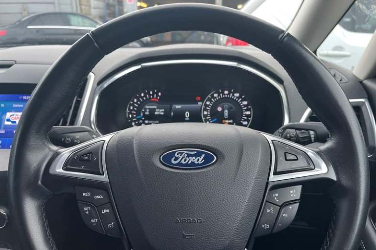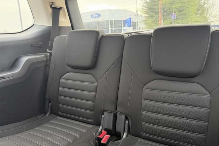 'Ford Power' starter button, 10.1 semi digital cluster, Easy fuel capless refuelling system, eCall emergency call system, Ford pass connect embedded modem, Front and rear parking sensors, Hydraulic PAS, Lane keeping aid - Driver impairment monitor, active steering with lane departure warning, Lights on warning, Outside temperature display, Traffic sign recognition, Trip computer, Auto dimming rear view mirror, Auto high beam assist, Automatic headlights, Automatic wipers with variable sensitivity adjustment, Body colour bumpers, Body colour door mirrors, Chrome trim to lower side windows, Dual exhaust pipes, Electric front and rear windows + one touch + global open/closing, Front fog lights, Halogen headlight with cornering lights, LED daytime running lights, LED rear lights, LED third brake light, Lower front grille with chrome surround, Power folding and heated door mirrors, Quickclear heated windscreen, Rain sensor, Rear privacy glass - dark glass to rear windows, Rear side wing doors, Silver roof rails, 2 height adjustable headrests - 3rd row, 230V power outlet in centre console, 2nd row reading lights, 3 height adjustable headrests - 2nd row, 3 individual fold flat 2nd row seats, 3rd row rear seats with manual fold flat, slide/recline and manual easy entry, Ambient interior lighting (excludes 2nd row footwell), Driver/passenger sunvisors with illuminated vanity mirrors + covers, Dual zone air conditioning, Floor mats in all three rows, Front door scuff plates, Front headrests,