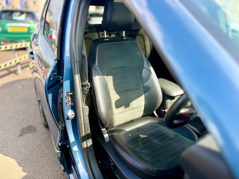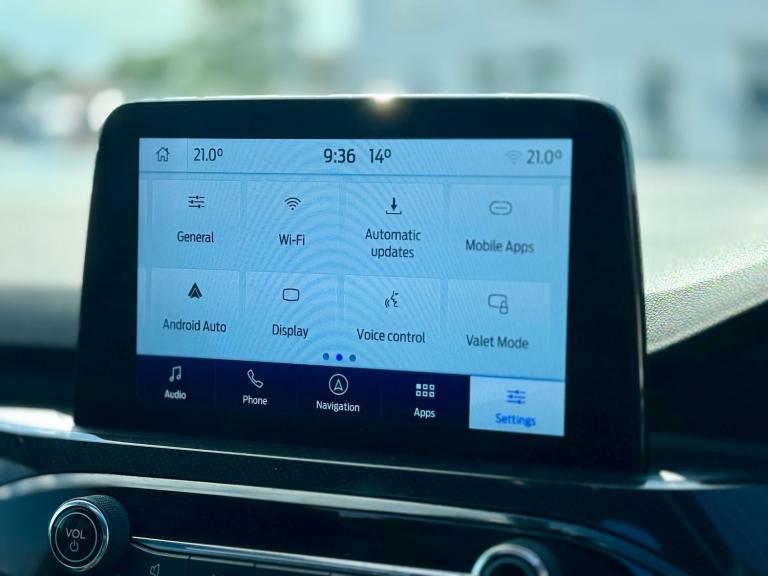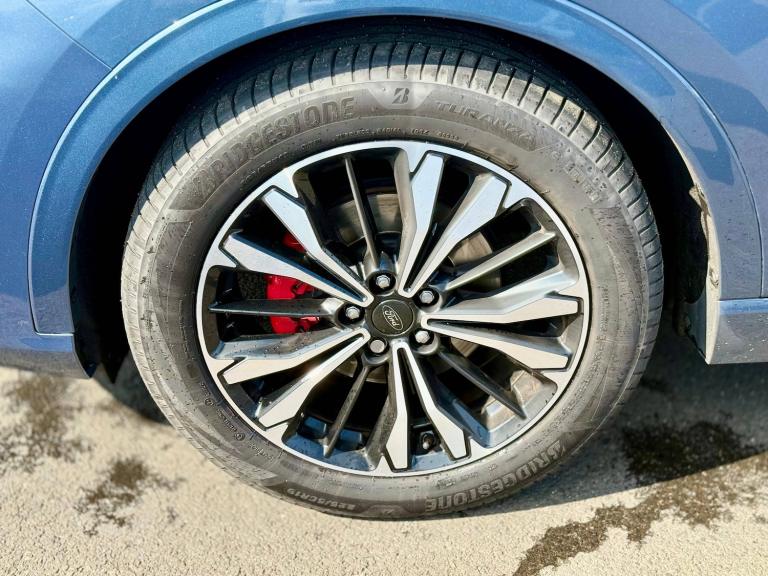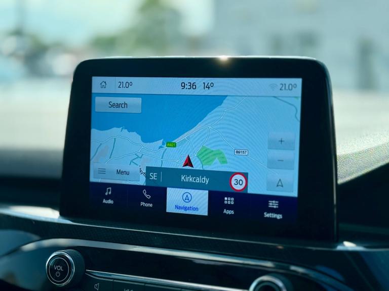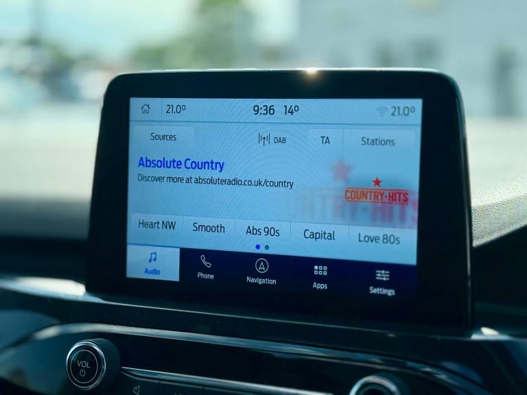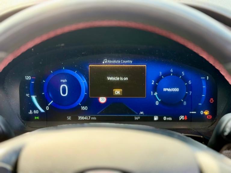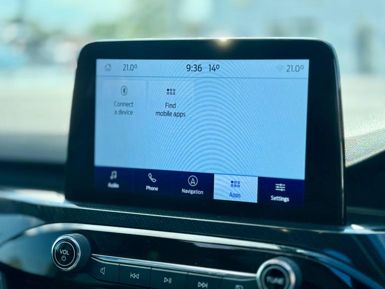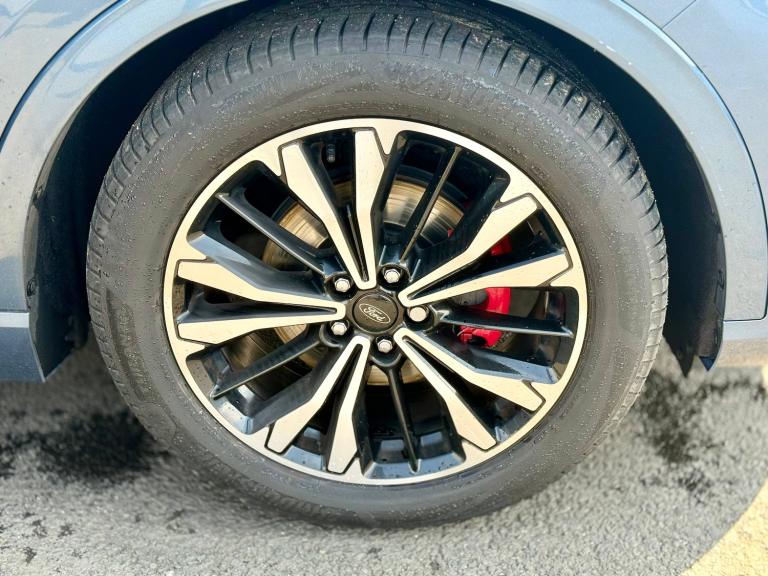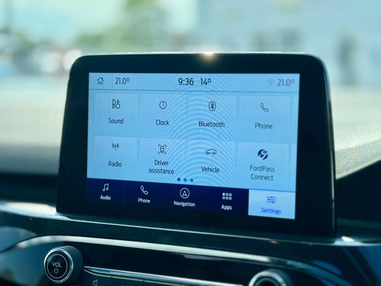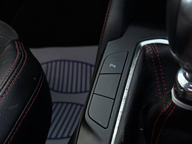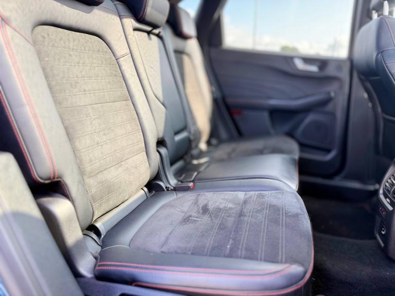 3x3 point rear seatbelts, Airbags - front driver/passenger, front and rear curtain, Drivers knee airbag, Electronic stability control (ESC) and ABS, Ford MyKey Gen 2 safety system, Manual child proof rear door locks, Post collision braking, Pre collision assist with autonomous emergency braking, Rear seat Occupancy alert, Red brake calipers, Tyre pressure monitoring system, 12.3 inch digital colour instrument cluster, Cruise control with adjustable speed limiter, Ford easy fuel, Ford SYNC 3 with 8 inch TFT LCD touchscreen, App Link, andriod auto/apple carPlay, emergency assistance and navigation with Ford pass connect, Front and rear parking sensors, Hands free power tailgate, Lane keeping aid with lane departure warning, Power assist steering, Rear view camera, Selectable drive modes, Service interval indicator, Auto headlamps with high and low beam, Black roof rails, Body colour bumpers, Day/night rear view mirror, Front LED fog lamps, Full LED headlamps, Large rear roof spoiler, LED daytime running lights, LED rear lights, Power folding, electrically adjustable and heated door mirrors with puddle lights, Power front/rear windows with global close, Power opening panoramic roof, Quickclear heated windscreen, Rain sensing wipers, Rear privacy glass, Rear side wing doors, Rear wiper, Solid paint, ST Line body styling kit with unique front and rear fascia and bumper, rear painted diffuser, front painted skid plates, dark mesh upper grille, ST Line front scuff plates, Third brake light, Twin exhausts, 10 way power adjustable drivers seat, 8 way manual passenger seat including lumbar support and height adjust, Alloy pedals, Centre console with electronic parking brake, Dark headlining and pillars, Electronic automatic temperature control (EATC), Flat bottomed leather steering wheel in sensico with red stitching, Front and rear head restraints, Heated passenger and driver seats, Heated rear seats, Heated steering wheel, Partial premium touch Sensico with black cloth inserts and red stitching, Rear centre head restraint, Single front passenger seat, Sports seats, ST Line front and rear floor mats, ST Line gear knob, Sports suspension, Twist beam rear suspension, Engine immobiliser, Keyless entry and Ford power start button, Locking wheel nuts, Remote powered central double locking doors, Thatcham category 1 alarm, BandO premium audio system with 10 speakers and subwoofer, 2 USB ports, DAB radio/CD, 19 inch 5x2 spoke high gloss machined alloy wheels, Tyre