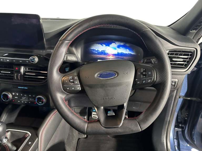 .Key Features; Rear view camera B&O premium audio system with 10 speakers and subwoofer Power opening panoramic roof Heated front and rear seats android auto/apple carplay Ownership: 1 Owner This 2022 Ford Kuga T ST Line X Edition is a Ford manufacturer approved vehicle, offering peace of mind with its excellent provenance. Powered by a 1.5 litre petrol engine and meeting Euro 6 emissions standards, this model combines efficiency with performance. The ST Line X Edition trim level ensures a premium experience, enhanced by a power opening panoramic roof that floods the cabin with light. Further elevating your driving experience, this Kuga features heated rear seats and a heated steering wheel, ensuring comfort for all occupants in any weather. Parking is made simple with a rear view camera and front and rear parking sensors. This particular model also benefits from a low insurance group, indicating it could be a more economical choice for many drivers..12.3'' digital colour instrument cluster, Ford easy fuel, Ford SYNC 3 with 8'' TFT LCD touchscreen, App Link, andriod auto/apple carPlay, emergency assistance and navigation with Ford pass connect, Front and rear parking sensors, Hands free power tailgate, Lane keeping aid with lane departure warning, Power assist steering, Rear view camera, Selectable drive modes, Service interval indicator, Sports suspension, Twist beam rear suspension, B&O premium audio system with 10 speakers and subwoofer, 2 USB ports, DAB radio/CD, Auto headlamps with high and low beam, Black roof rails, Day/night rear view mirror, Front LED fog lamps, Large rear spoiler, LED daytime running lights, LED rear lights, Power folding heated door mirrors with puddle lights, Power front/rear windows with global close, Power opening panoramic roof, Privacy glass, Quickclear heated windscreen, Rear side wing doors, Rear wiper, ST Line body styling kit with unique front and rear fascia and bumper, rear painted diffuser, front painted skid plates, dark mesh upper grille, ST Line front scuff plates, Third brake light, Twin exhausts, 10 way power adjustable drivers seat, 2nd row sliding seats with 60:40 split, 8 way manual passenger seat including lumbar support and height adjust, Alloy pedals, Centre console with electronic parking brake, Dark headlining and pillars, Dual electronic automatic temperature control, Flat bottomed leather steering wheel in sensico with red stitching, Front and rear head restraints, Heated passenger and driver