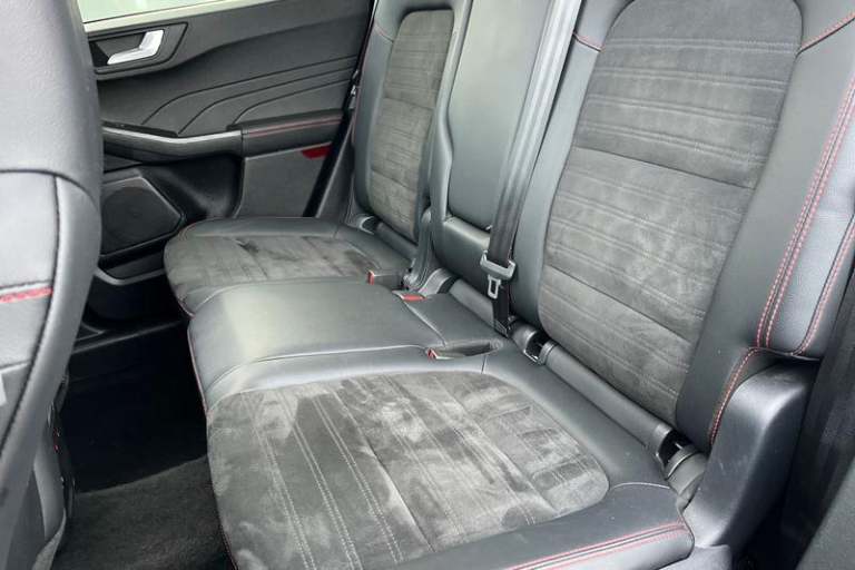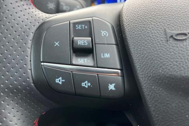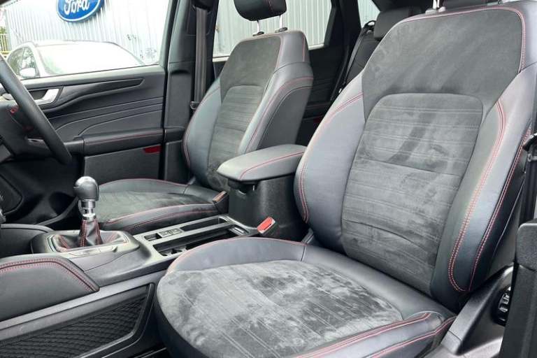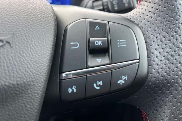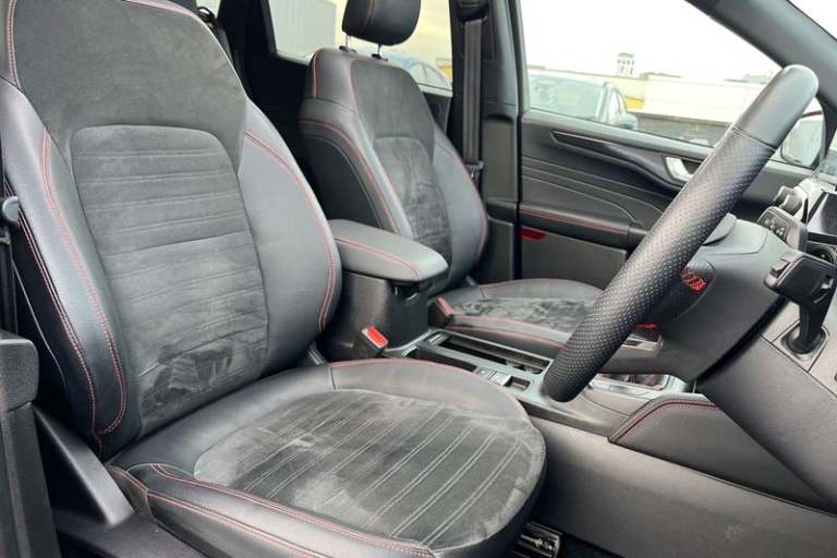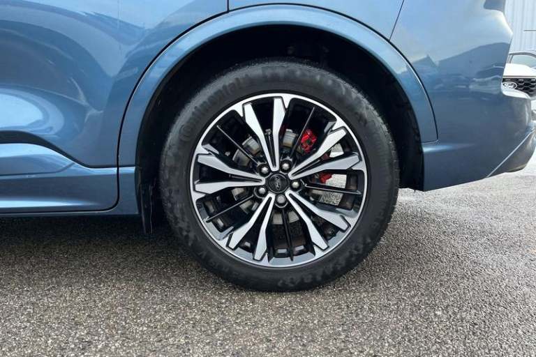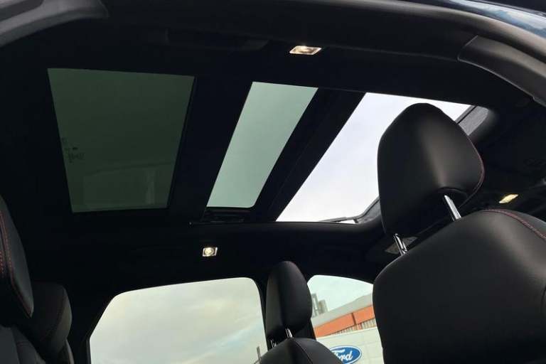 12.3 digital colour instrument cluster, Ford easy fuel, Ford SYNC 3 with 8 TFT LCD touchscreen, App Link, andriod auto/apple carPlay, emergency assistance and navigation with Ford pass connect, Front and rear parking sensors, Hands free power tailgate, Lane keeping aid with lane departure warning, Power assist steering, Rear view camera, Selectable drive modes, Service interval indicator, Auto headlamps with high and low beam, Black roof rails, Body colour bumpers, Day/night rear view mirror, Front LED fog lamps, Large rear roof spoiler, LED daytime running lights, LED rear lights, Power folding, electrically adjustable and heated door mirrors with puddle lights, Power front/rear windows with global close, Power opening panoramic roof, Quickclear heated windscreen, Rain sensing wipers, Rear privacy glass, Rear side wing doors, Rear wiper, ST Line body styling kit with unique front and rear fascia and bumper, rear painted diffuser, front painted skid plates, dark mesh upper grille, ST Line front scuff plates, Third brake light, Twin exhausts, 2nd row sliding seats with 60:40 split, Alloy pedals, Centre console with electronic parking brake, Dark headlining and pillars, Electronic automatic temperature control (EATC), Flat bottomed leather steering wheel in sensico with red stitching, Front and rear head restraints, Heated passenger and driver seats, Heated rear seats, Heated steering wheel, Partial premium touch Sensico with black cloth inserts and red stitching, Rear