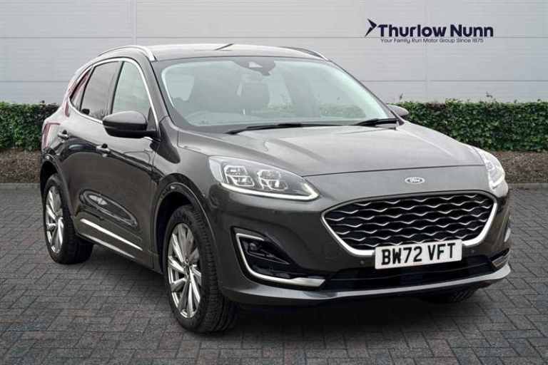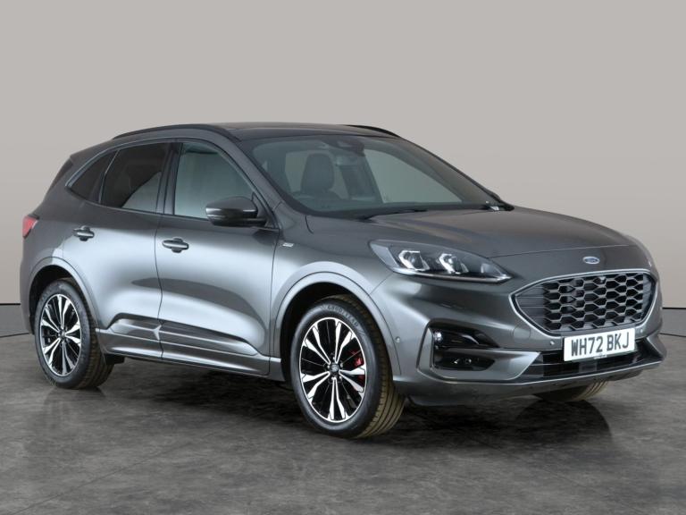 Experience the Ford Kuga SUV with the impressive Driver Assistance and Technology Packs, offering Adaptive Cruise Control, Head-Up Display, and a panoramic roof for an open, airy feel. Enjoy luxury touches like heated seats, a heated steering wheel, part Sensico upholstery with red stitching, and a premium Bang & Olufsen sound system. Stay effortlessly connected with Sat Nav, Keyless Entry, and a handsfree power tailgate. The reversing camera and active lane assist add confidence to every drive. This stylish grey Kuga is ready for every adventure. 2 services recorded, last serviced on 20/04/2026 at 27,264 miles. MOT to 27/09/2026. Visit our website for service history, online valuation, full vehicle specification plus multiple images. Any feature/option specified here is from 3rd party data. We cannot guarantee the accuracy of any specification supplied by a 3rd party. We recommend that you physically check the specification of the vehicle on site prior to purchase. This information does not form part of the buying contract. Terms & Conditions apply. We have over 2,000 cars available from our 10 national branches, check our website to see all our stock. Our Trustpilot rating is 4.4/5 with over 9,000 reviews.
