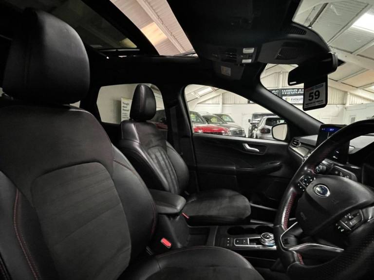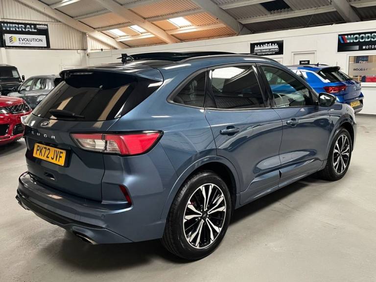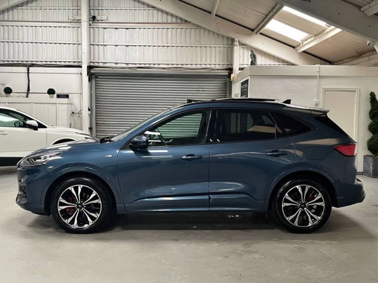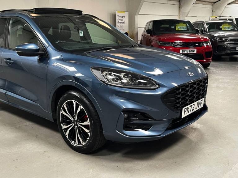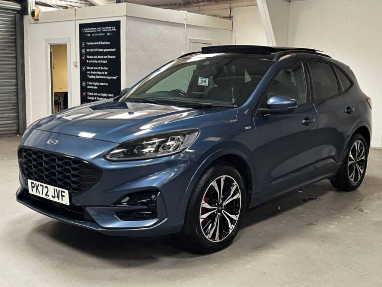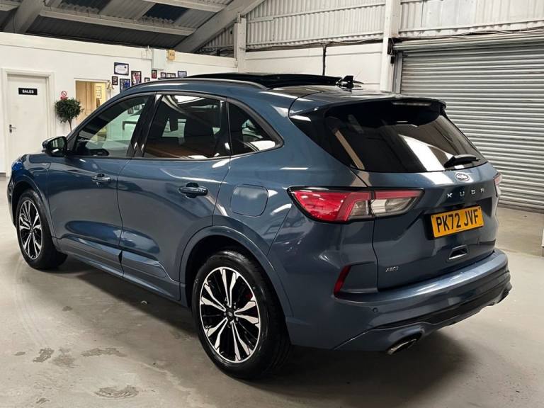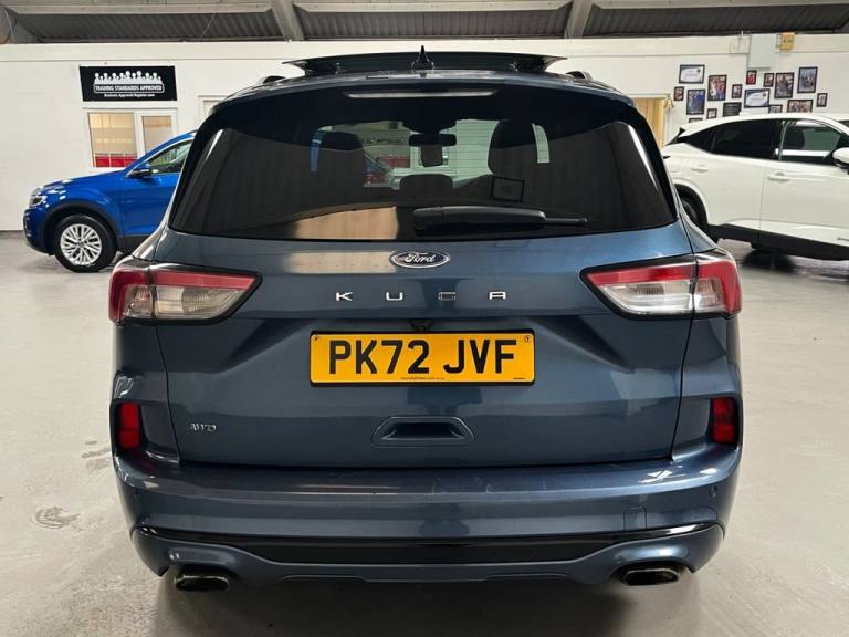 This 2022 Ford Kuga ST-Line X Edition offers the peace of mind that comes with a clear vehicle history check and a single owner from new. Compimented by a full main dealer service history ensuring this vehicle has been maintained to the highest of standards. This Four Wheel Drive model is powered by an efficient 2.0L Diesel Engine, meeting Euro 6 emission standards. Inside, youll find the comfort of the Winter Pack, which includes heated seats and a heated steering wheel, perfect for colder journeys. The ST-Line X Edition also boasts automatic headlights with auto high-low beam functionality, a Ford Keyfree system for keyless entry and starting, and a power opening panoramic roof for an airy cabin experience. Experience impressive performance with a 0-60mph acceleration time of just 8.7 seconds, all while achieving an excellent fuel economy of 50 mpg. This Ford Kuga also benefits from a low insurance group and low CO2 emissions, indicating it is more economical to run than many similar vehicles. These highlights demonstrate how this Kuga ST-Line X Edition stands out for its blend of performance, efficiency, and cost effectiveness. UP TO 3 YEARS extended very comprehensive warranty packages available. 3 MONTH PARTS AND LABOUR WARRANTY INCLUDED. For a full list of specifications please see extra features tab below....We are TRADING STANDARDS APPROVED for your complete peace of mind... Over thirty years of trading....Low rate finance available subject to status.... WE WELCOME YOUR PART EXCHANGE .... All of our vehicles are FULLY HPI CLEAR and guaranteed mileage.... All cars go through a 124 point quality inspection.... Facetime and walkaround videos on request....Please click on our website link for a comprehensive list of all the services we provide. ..19in Alloy Wheels - 5x2 Spoke - High Gloss - Machined, 2nd Row Sliding Seats, Heated Rear Seats, Chrome Blue, 8-Way Manual Passenger Seat including Lumbar Support and Height Adjust, Power Opening Panoramic Roof, Front and Rear Parking Sensors, Privacy Glass, Remote Tailgate Release, Heated Driver and Passenger Seats, ABS - Anti-Lock Braking System with Enhanced Electronic Stability Control - ESC with Traction Control - Emergency Brake Assist - EBA - Hill Start Assist, Air Conditioning - Electronic Automatic Temperature Control - EATC, Airbag - Driver and Front Passenger Side, ST-Line Bodystyling Kit, Airbag - Front Passenger Deactivation Switch, Airbags - Driver and Front Passenger, Airbags - Front and Rear Side Curtain, Aluminium - Finish Front Scuff Plates with ST-Line Script, Aluminium Foot Pedals - ST-Line Design, Ambient Lighting, Auto Dimming Rear View Mirror, Auto Wipers, Automatic Door Relocking, Automatic Headlights with Auto High-Low Beam, Black Roof Rails, Centre Console with Electronic Parking Brake, Cruise Control with Intelligent Speed Limiter, Driver and Passengers Sun Visor with Illumination, Dual Exhaust Tailpipes with Unique Brushed Stainless Steel Finish, eCall, Electric Childproof Locks on Rear Doors, Electric Parking Brake with Auto Hold, Electrical Charging Point in Second Row, Engine Immobiliser - SecuriLock, EPAS - Electric Power Assisted Steering, Exterior Door Handles - Body Coloured, Ford Easy Fuel System, Ford Keyfree System - Keyless Entry with Ford Power Starter Button, Ford SYNC3 DAB Navigation System, Front and Rear Bumper - Sporty Body Colour with Rear Ebony High-Gloss Insert, Front and Rear Floor Mats with Red Stitching, Front Lower Grille - Ebony Black Mesh, Front Seats - 2-Way Manual Height Adjust Passive Head Restraints, Front Seats - Drivers and Passengers Seatback Map Pockets, Front Upper Grille - Carbon Black Honeycombe Mesh and High-Gloss Black Surround, Front Windows - Laminated Glass, Full Digital 12.3in Instrument Cluster, Full LED Headlamps, Gearshift - Automatic - Electronic Rotary Gearshift Dial, Glovebox Lights, Handsfree Power Tailgate, Headlights - Automatic Follow Me Home Lighting, Headlights - Levelling System - Manual, Headlights - Unique Bending, Headliner - Sports Dark, Heated and Power Folding Door Mirrors with Puddle Lights, Heated Steering Wheel, 12v Socket - Voltage Regulator, High-Mounted Brake Light, Kuga Badge, Lane Keeping Aid with Lane Departure Warning, Large Rear Spoiler, LED Daytime Running