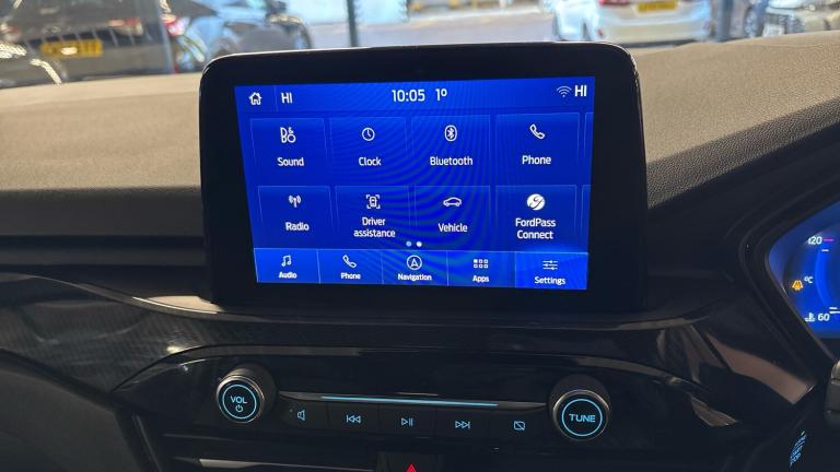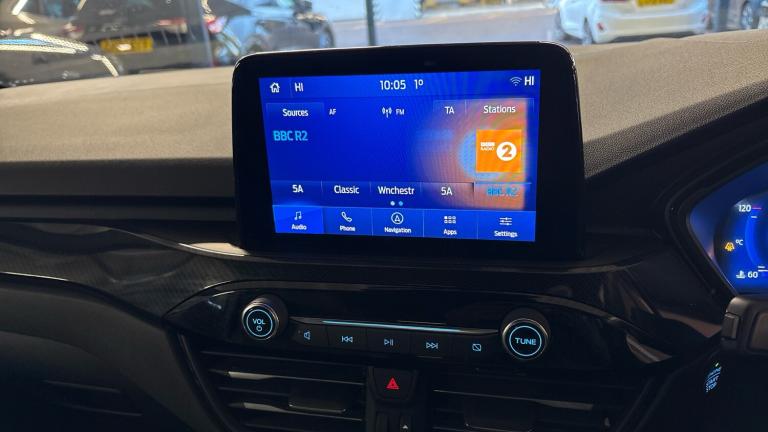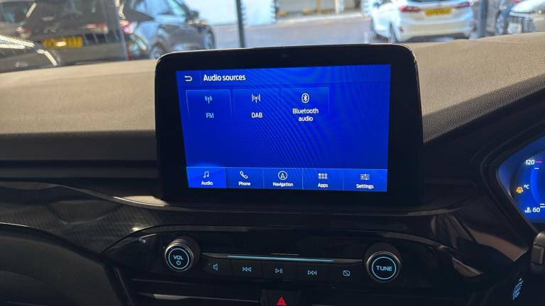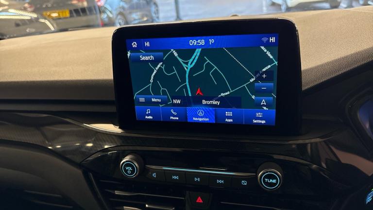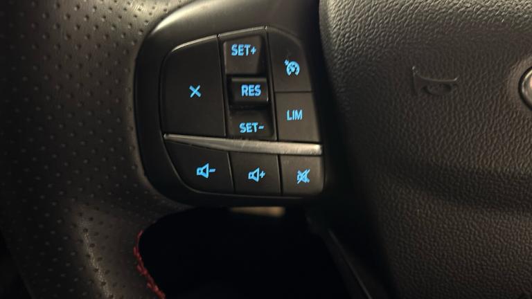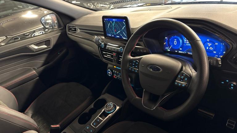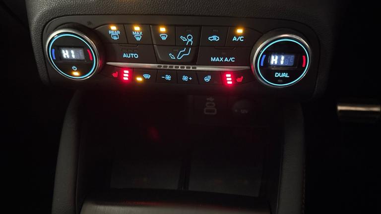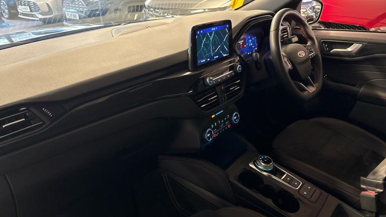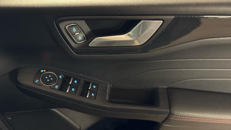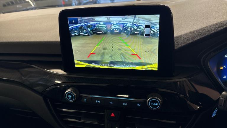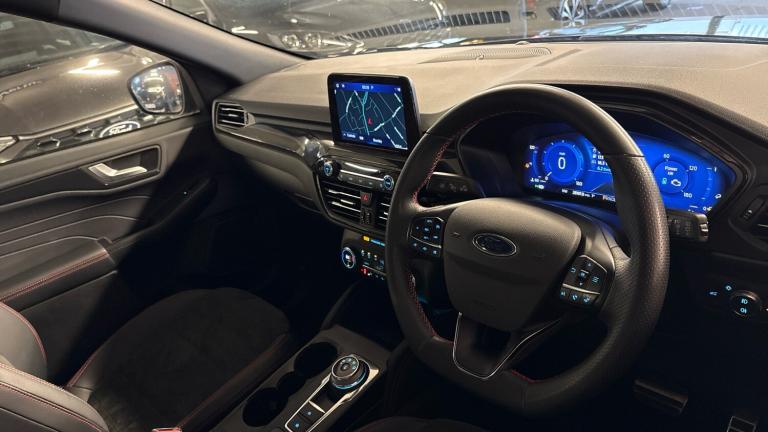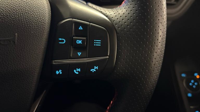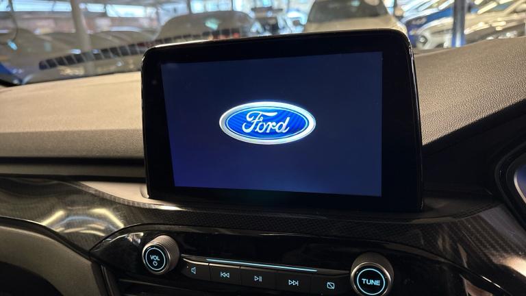 .ST Line front and rear floor mats, Quickclear heated windscreen, Power front/rear windows with global close, Rear wiper, Rear privacy glass, Rain sensing wipers, Red brake calipers, Post collision braking, Electronic stability control (ESC) and ABS, Sports suspension, Twist beam rear suspension, Front and rear parking sensors, Power assist steering, Lane keeping aid with lane departure warning, Selectable drive modes, Pre collision assist with autonomous emergency braking, Rear view camera, Ford easy fuel, Ford SYNC 3 with 8"" TFT LCD touchscreen, App Link, andriod auto/apple carPlay, emergency assistance and navigation with Ford pass connect, 12.3"" digital colour instrument cluster, Service interval indicator, Day/night rear view mirror, Power folding, electrically adjustable and heated door mirrors with puddle lights, B&O premium audio system with 10 speakers and subwoofer, 2 USB ports, DAB radio/CD, Black roof rails, Hands free power tailgate